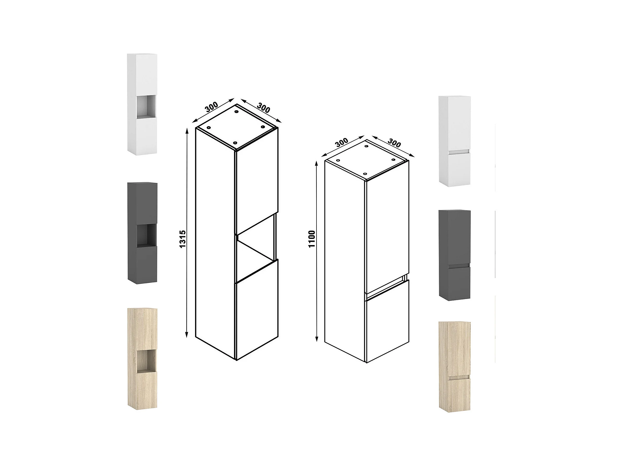 Ensemble meubles Salle de Bain 100cm avec colonne + miroir Chêne Wotan