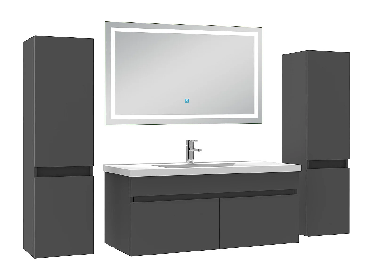 Ensemble meubles Salle de Bain 100cm avec colonne + miroir lumineux 3 couleurs Anthracite