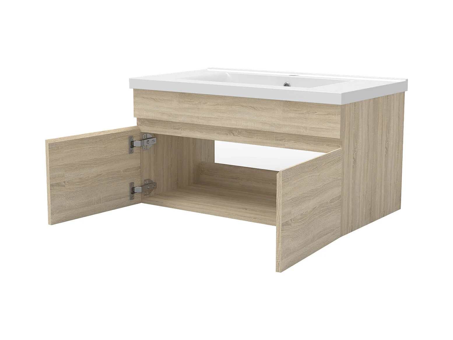 Ensemble meubles Salle de Bain 100cm avec colonne + miroir lumineux 3 couleurs + dimmable Chêne Wotan