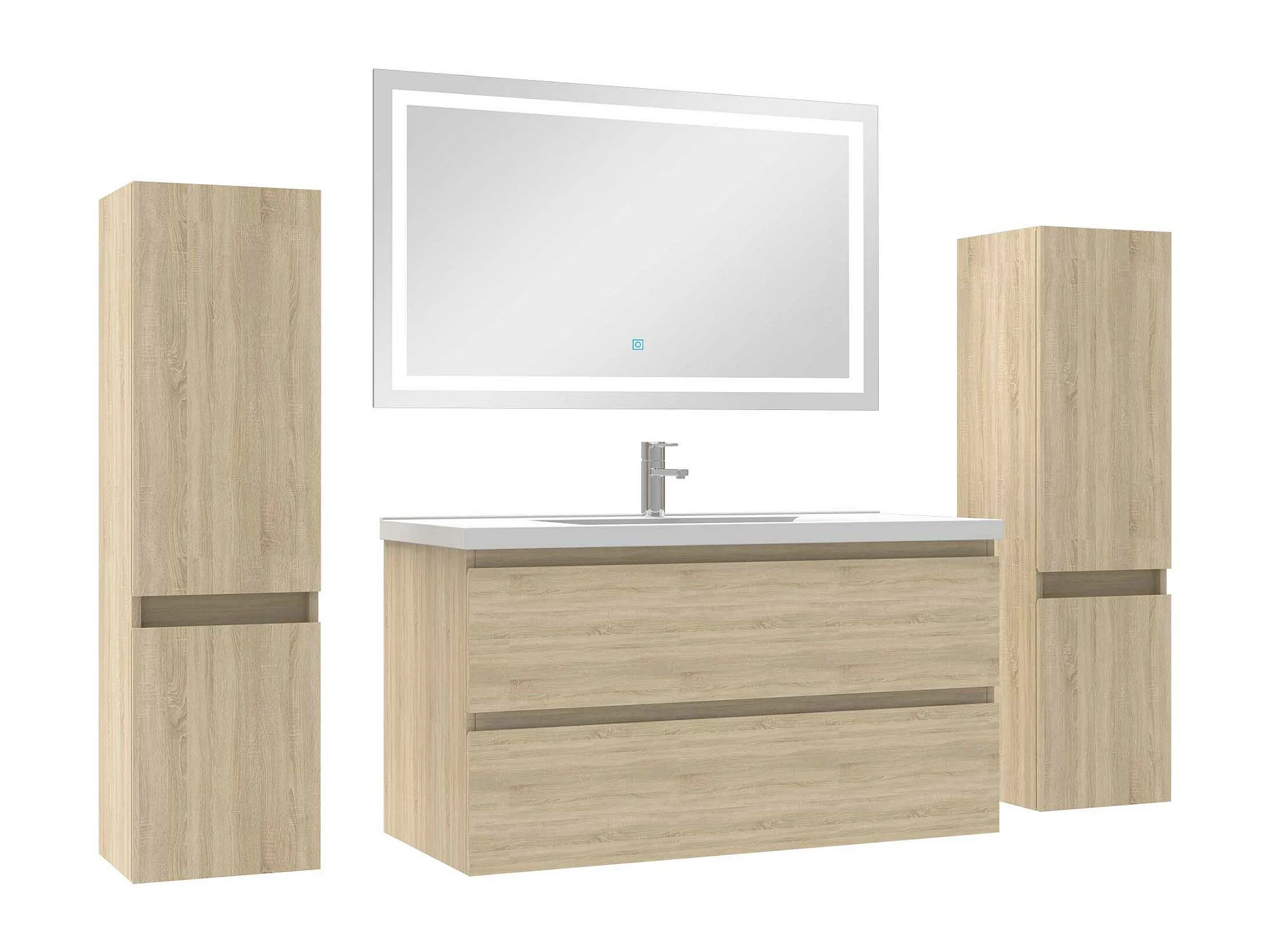 Ensemble meubles Salle de Bain 100cm simple vasque + colonne + miroir lumineux Chêne Wotan