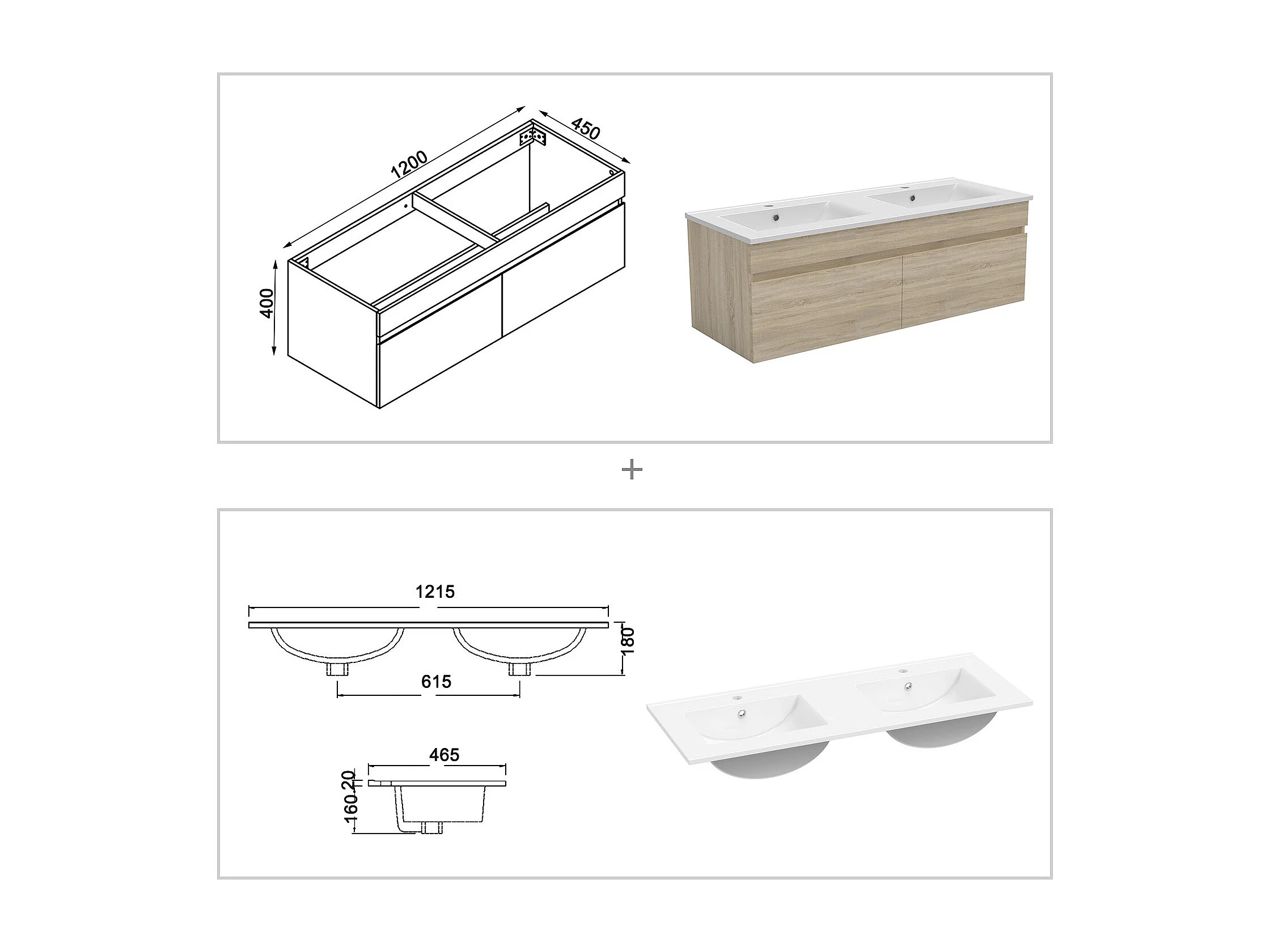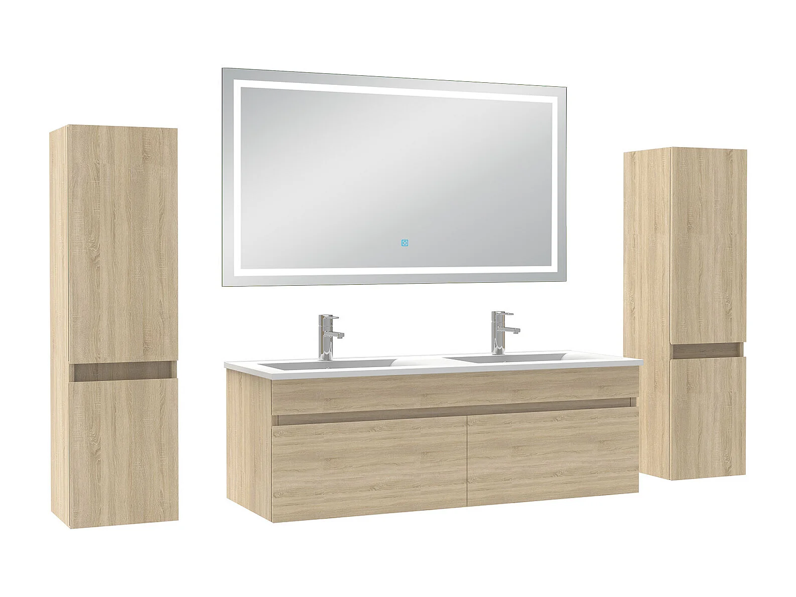 Ensemble meubles Salle de Bain 120cm avec colonne + miroir lumineux 3 couleurs Chêne Wotan