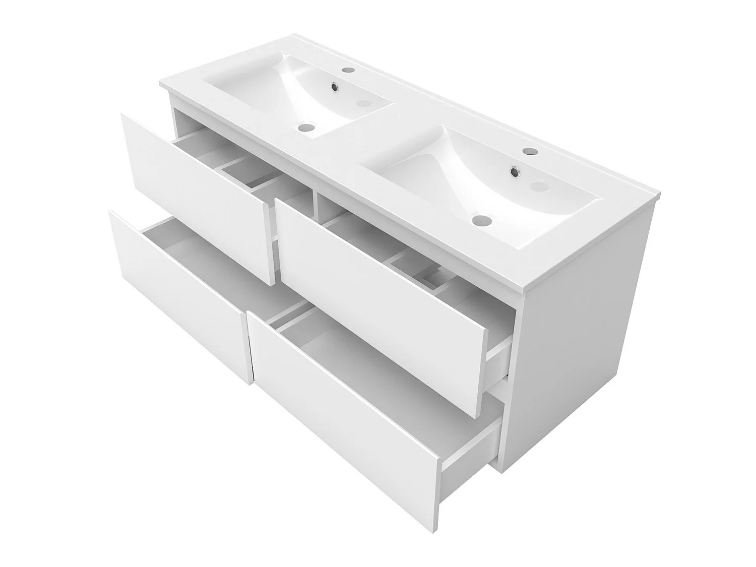Ensemble meubles Salle de Bain 120cm vasque + colonne + miroir rond lumineux Blanc