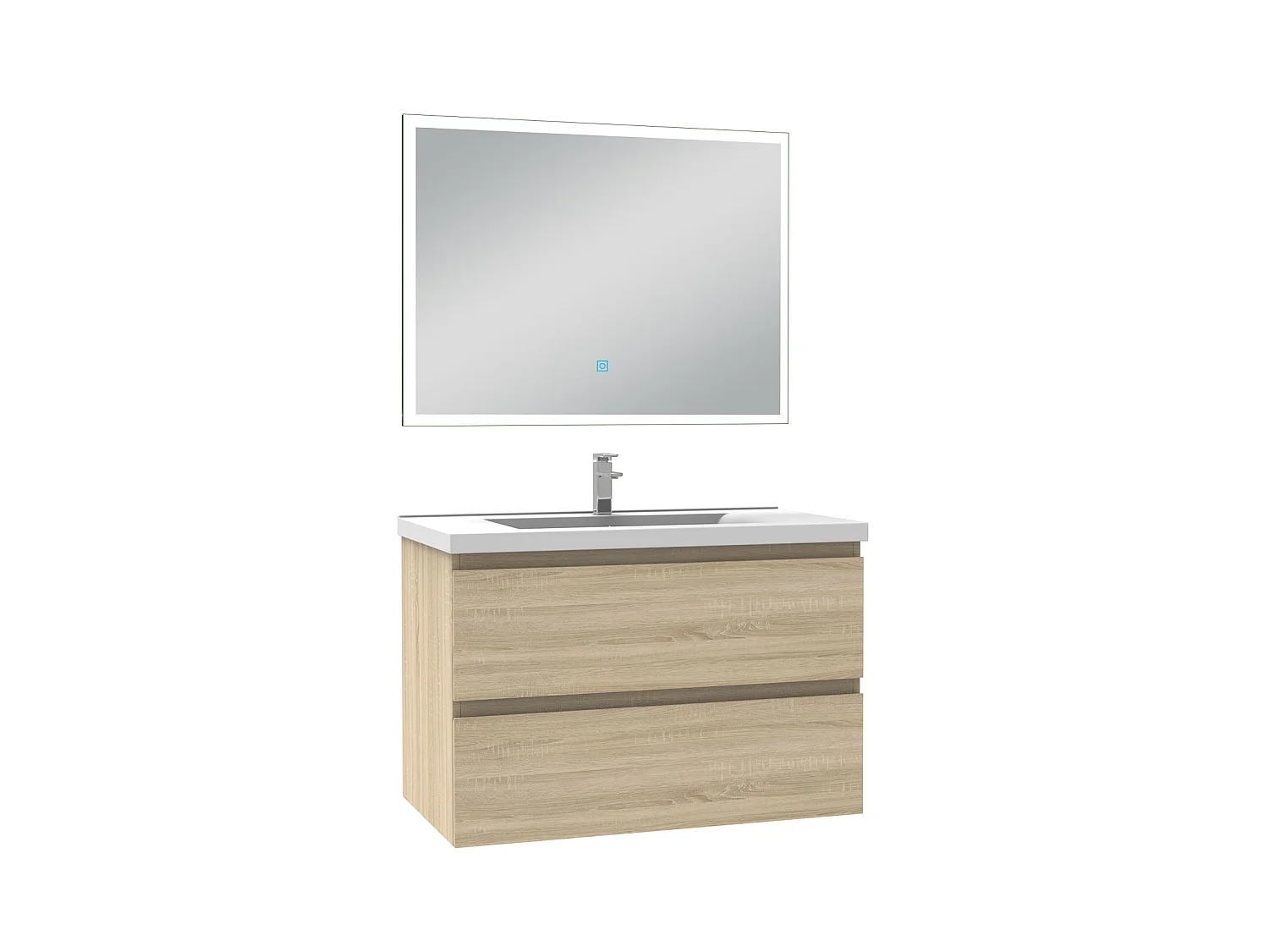 Ensemble meubles salle de bain 3pcs 80cm simple vasque + miroir Chêne Wotan, Aica