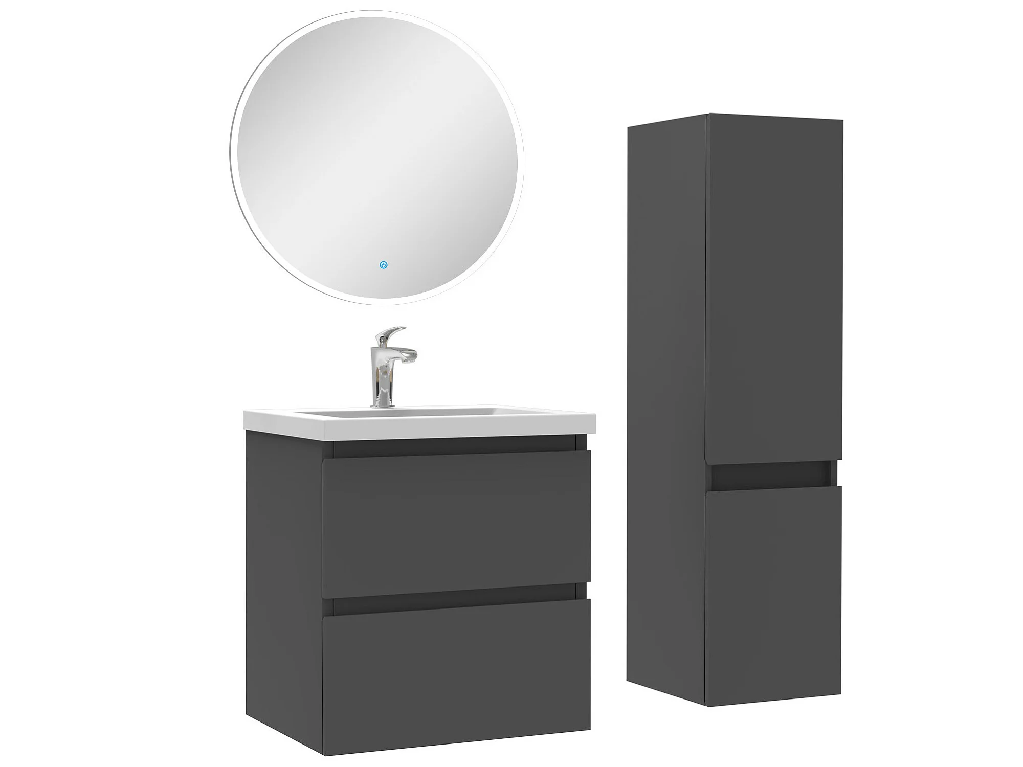 Ensemble meubles Salle de Bain 50cm vasque + colonne + miroir rond lumineux Anthracite