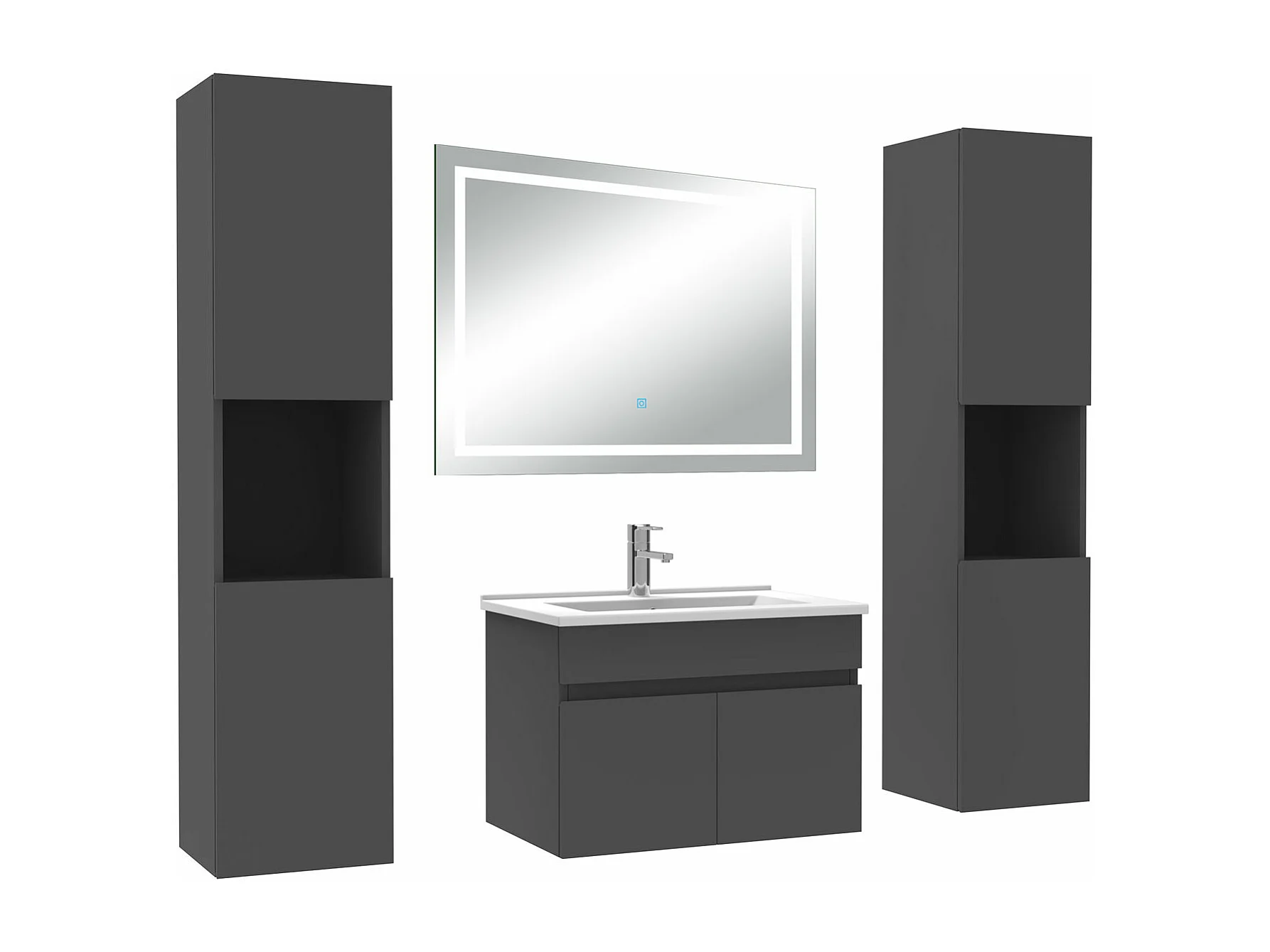 Ensemble meubles Salle de Bain 60cm avec colonne + miroir lumineux 3 couleurs + dimmable Anthracite