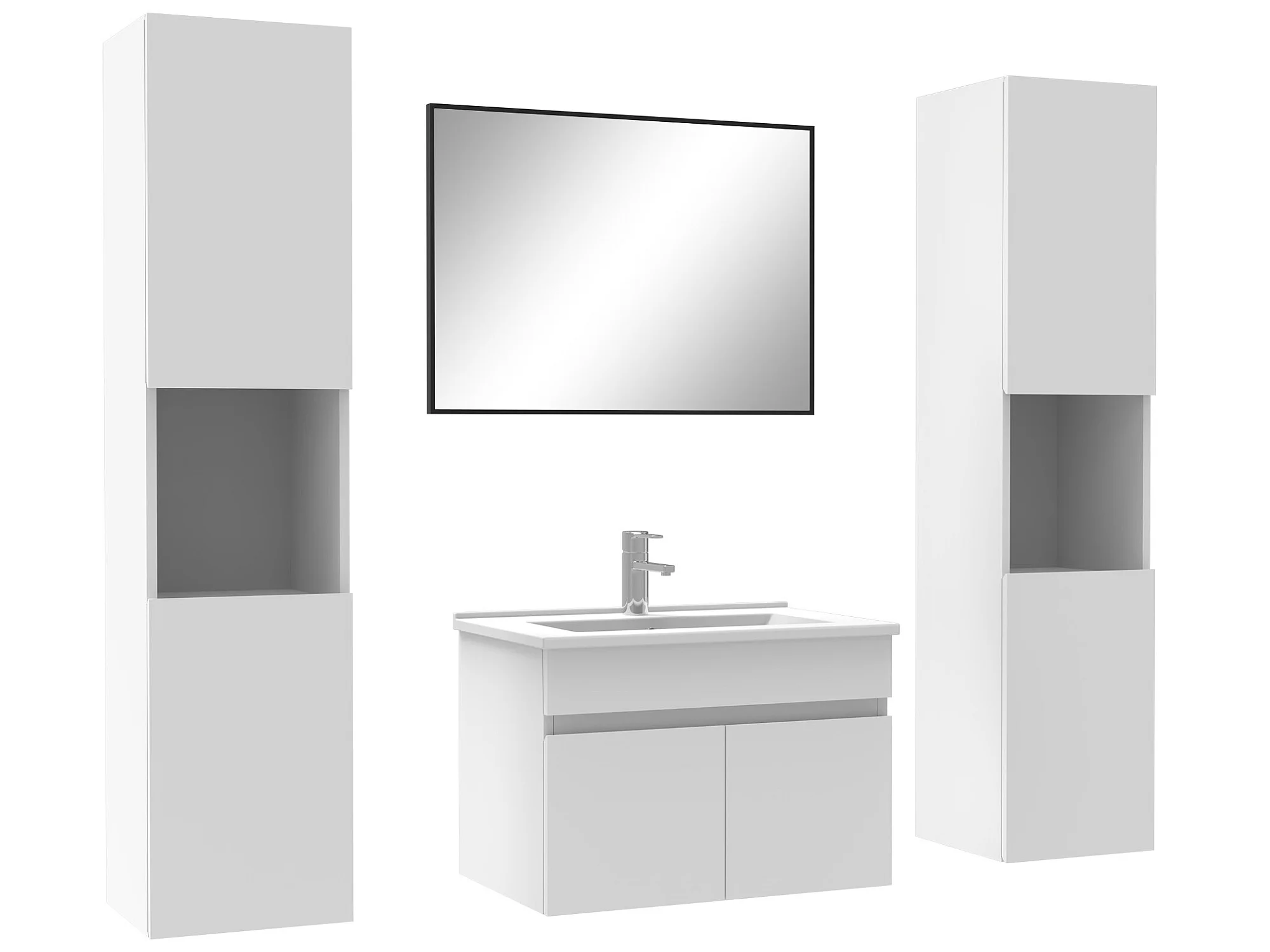 Ensemble meubles Salle de Bain 60cm simple vasque avec colonne + miroir mural Blanc