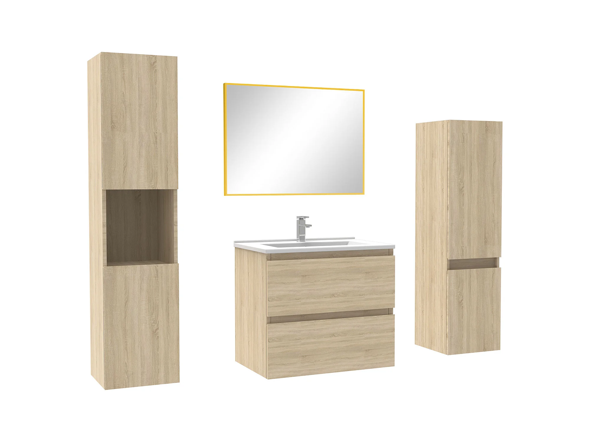 Ensemble meubles Salle de Bain 60cm vasque + colonne + miroir mural Chêne Wotan