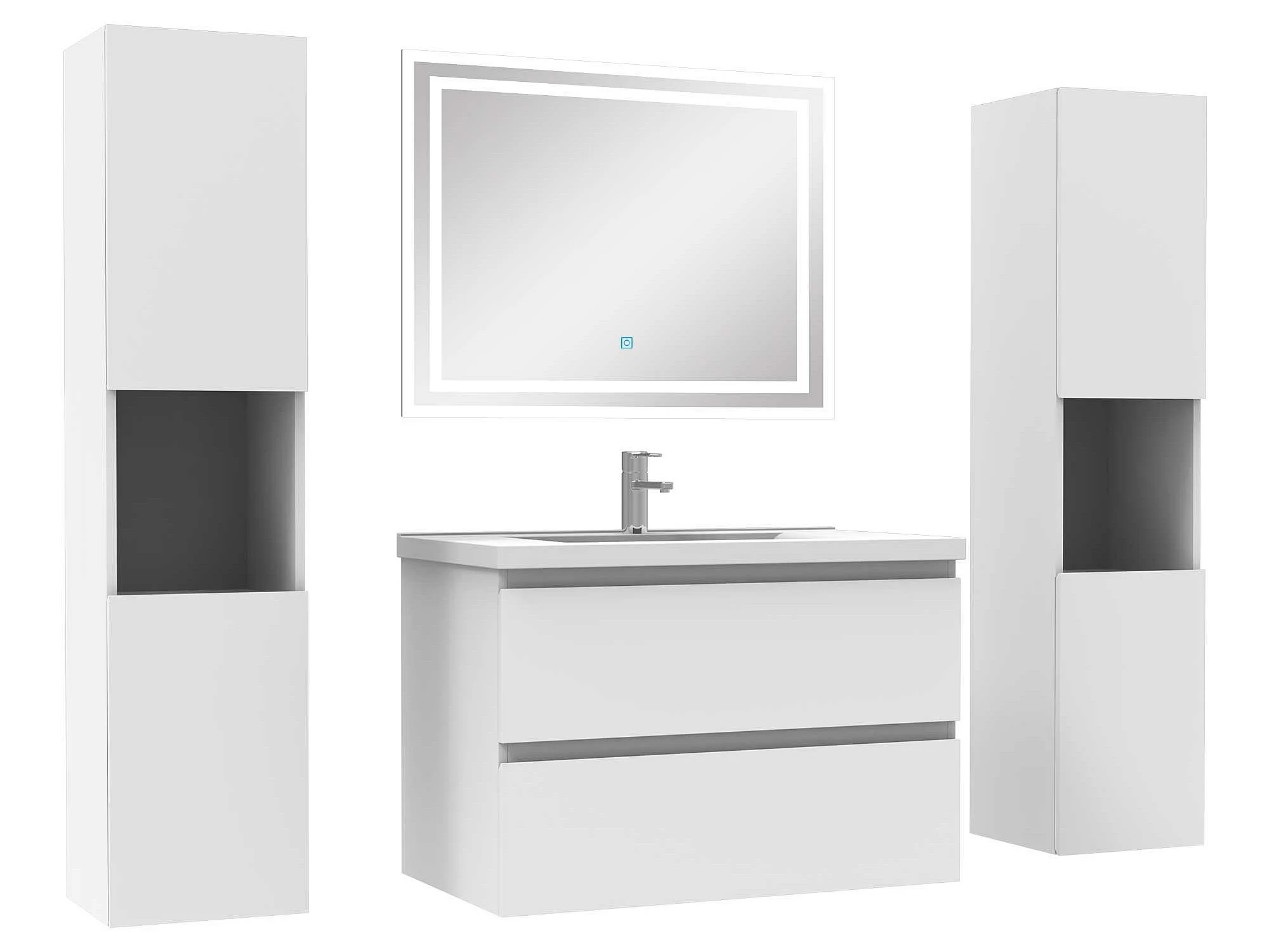 Ensemble meubles Salle de Bain 80cm avec colonne + miroir lumineux Blanc