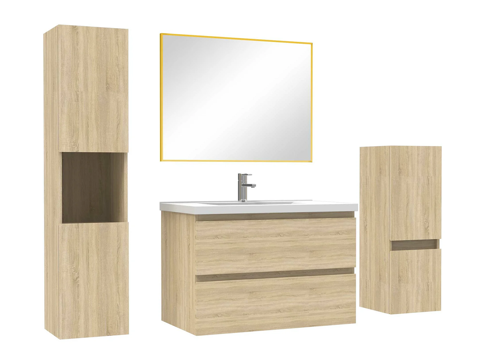 Ensemble meubles Salle de Bain 80cm simple vasque + colonne + miroir mural Chêne Wotan