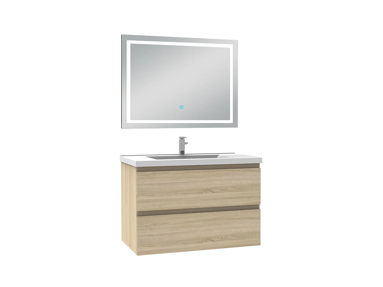 Ensemble meubles salle de bain 80cm simple vasque + miroir Chêne Wotan, Aica