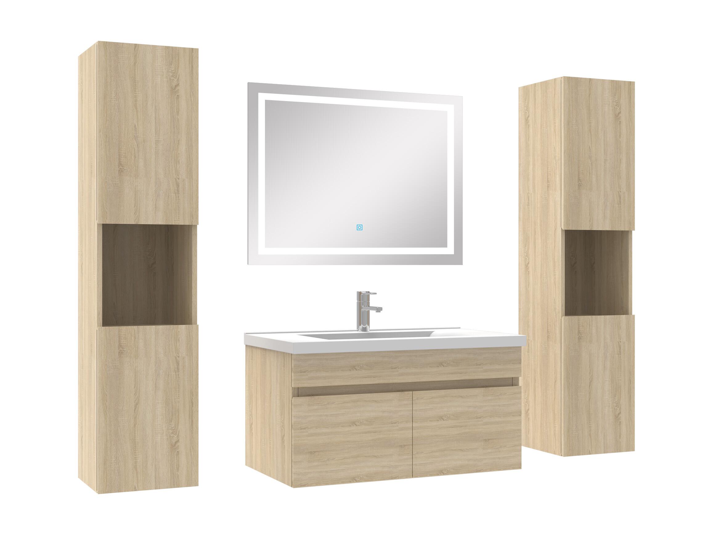 Ensemble meubles Salle de Bain 80cm vasque + colonnex2 + miroir lumineux Chêne Wotan