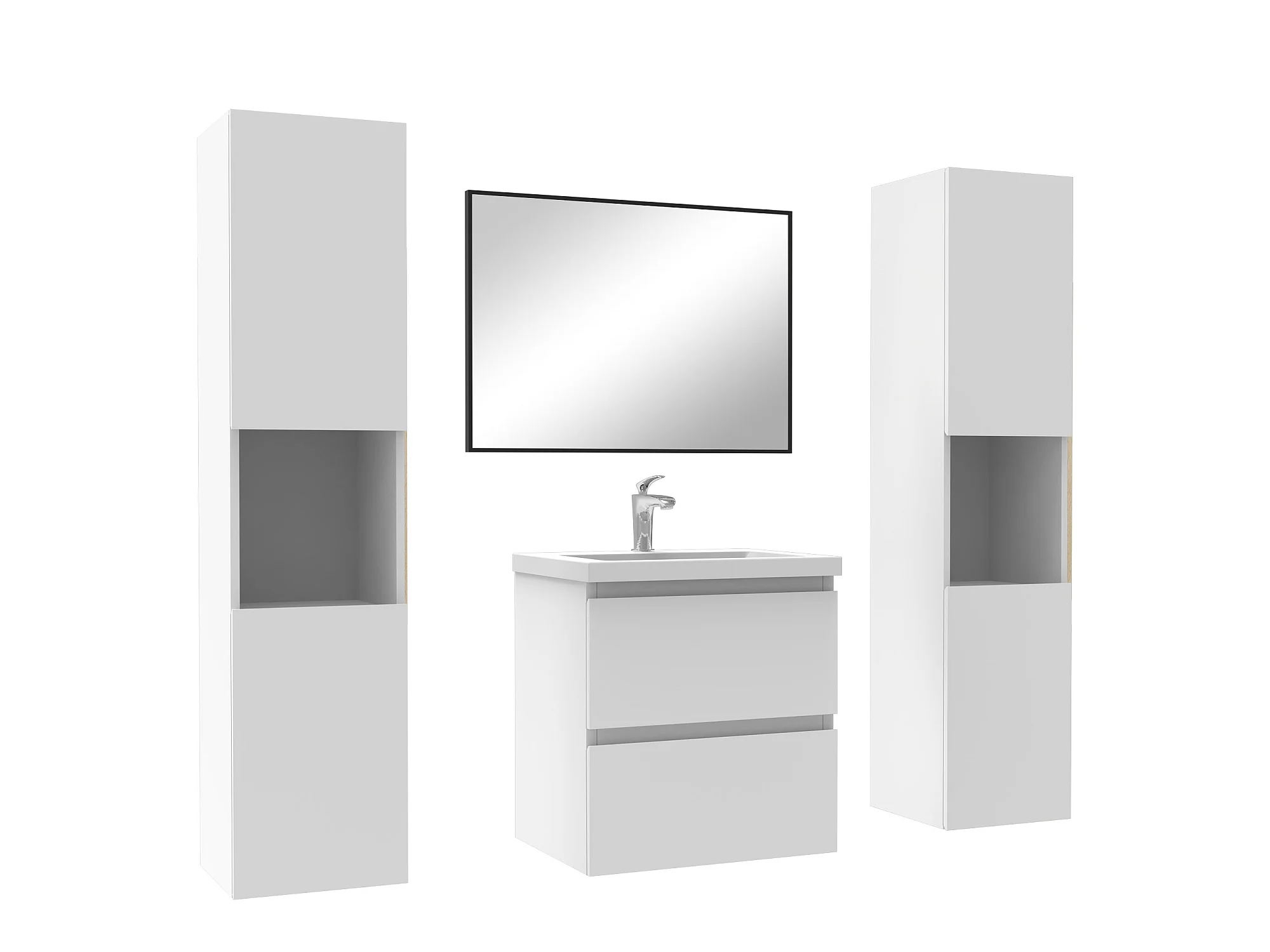 Ensemble meubles Salle de Bain avec colonne et miroir mural 50cm meuble blanc