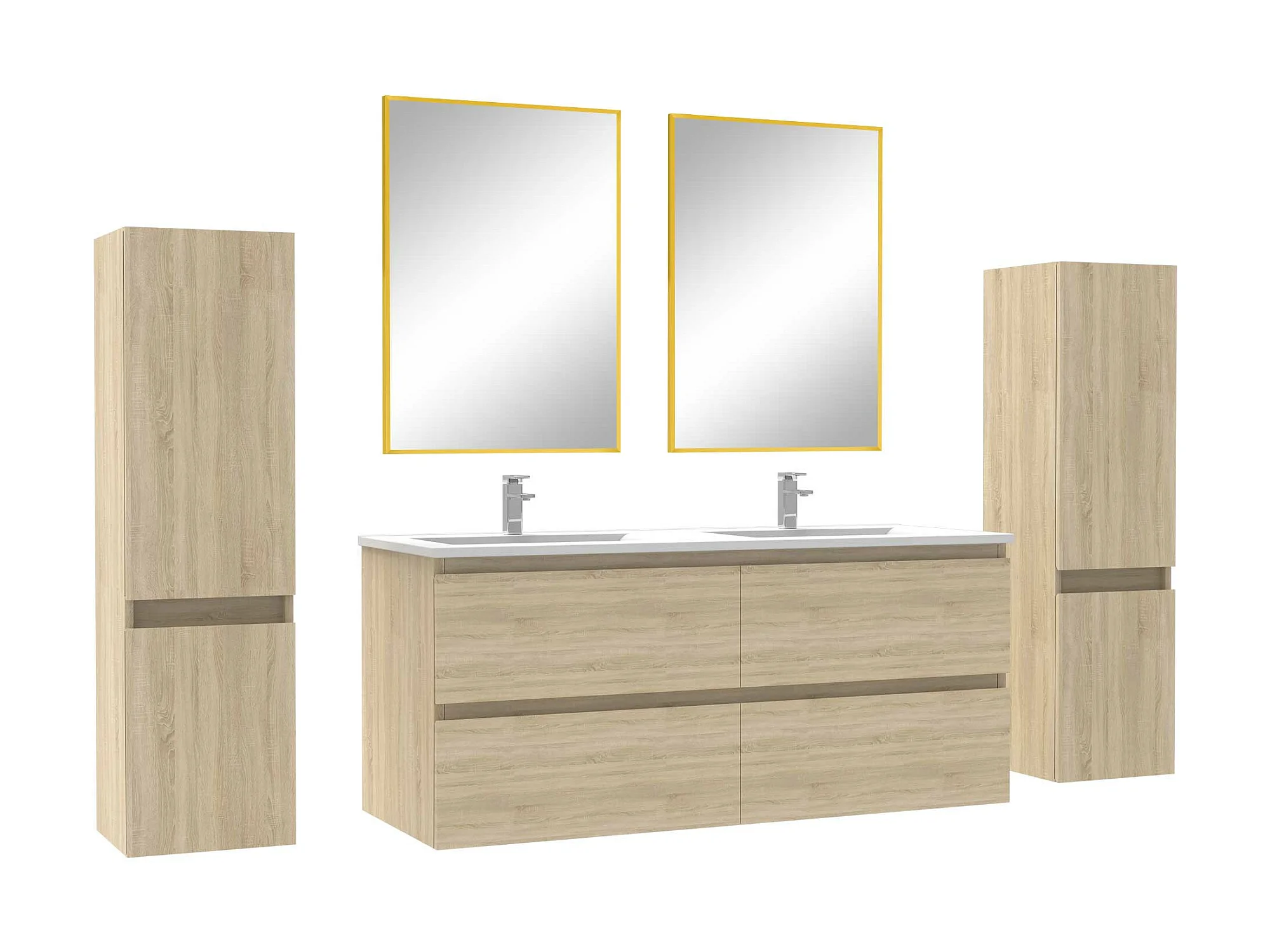 Ensemble meubles Salle de Bain avec colonne + miroir mural 120cm meuble Chêne Wotan