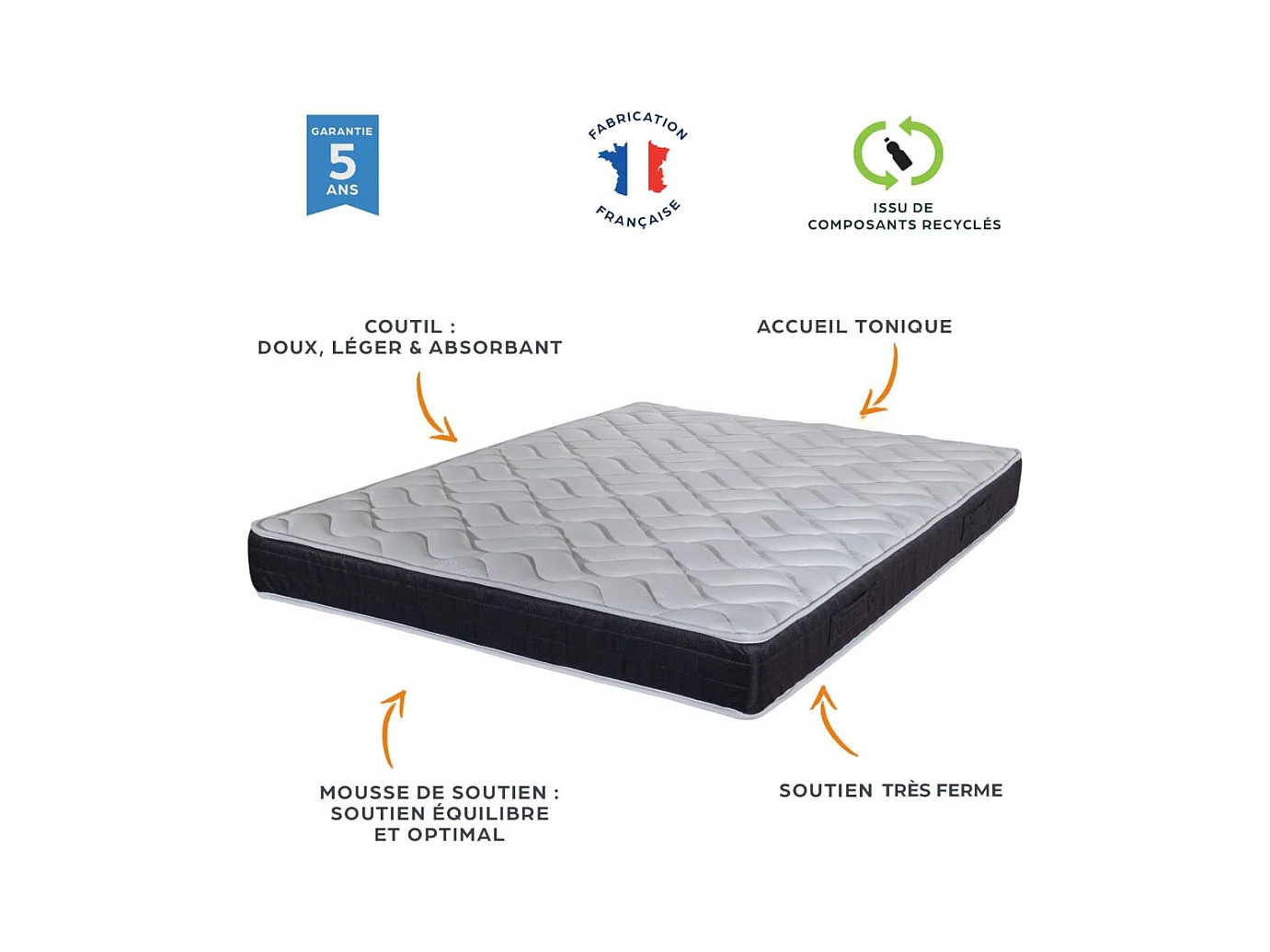 Matelas et sommier 2x90x190 Mousse - Malta - Soutien très ferme - Made in France