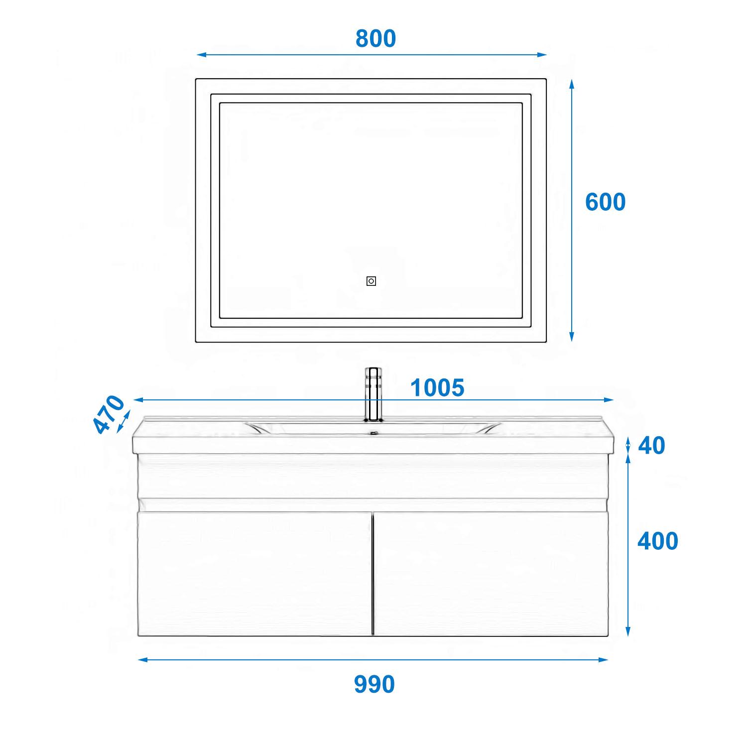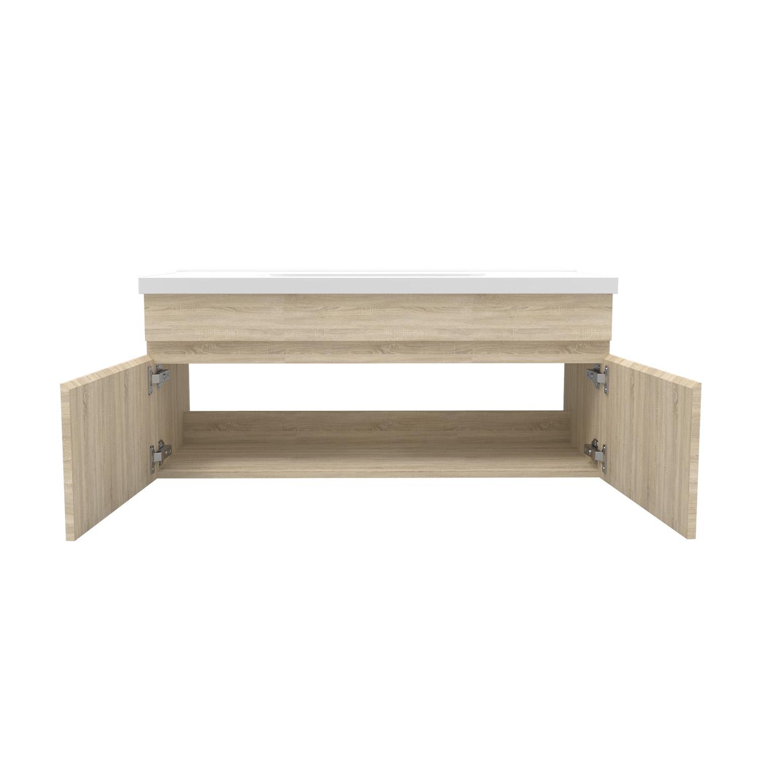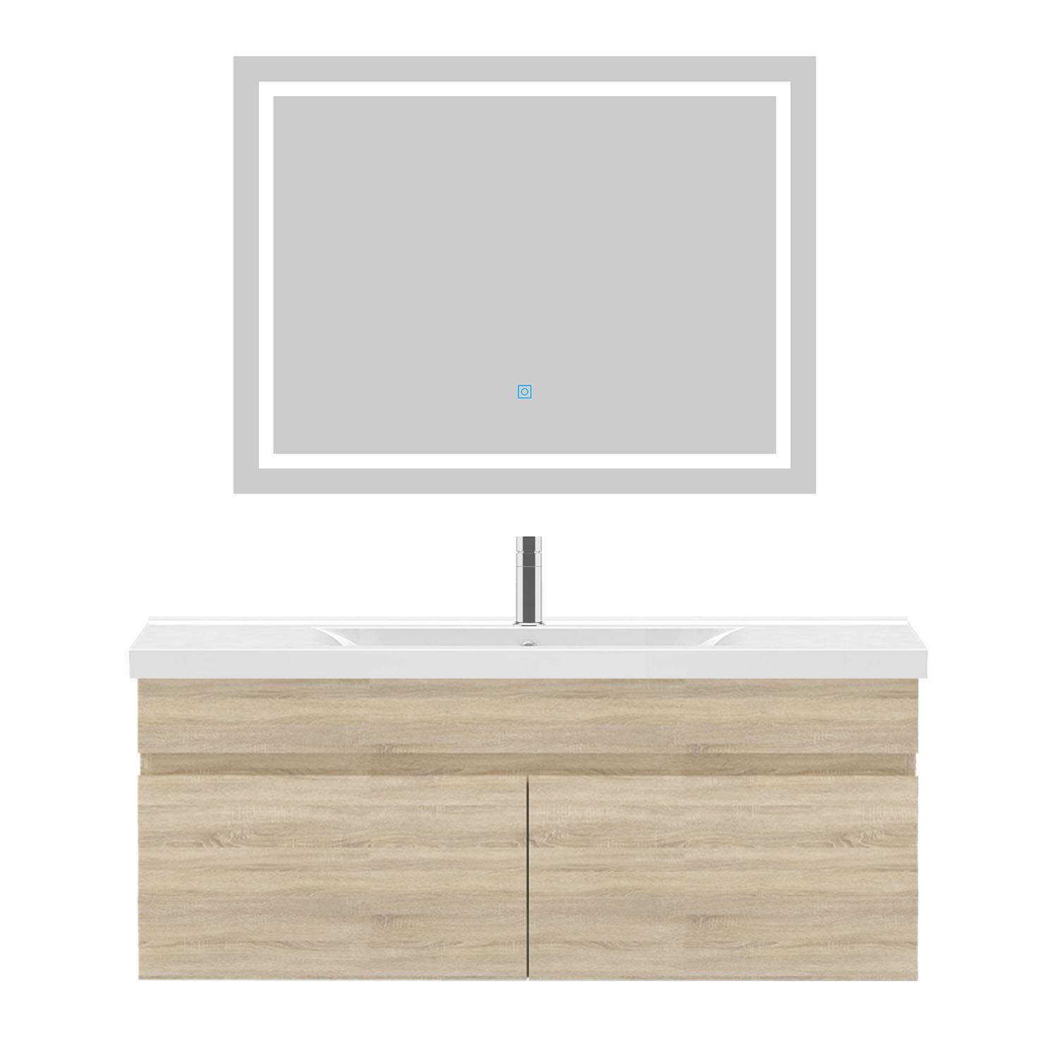 Ensemble muebles salle de bain 100cm simple vasque Chêne Wotan meuble acve miroir - Aica