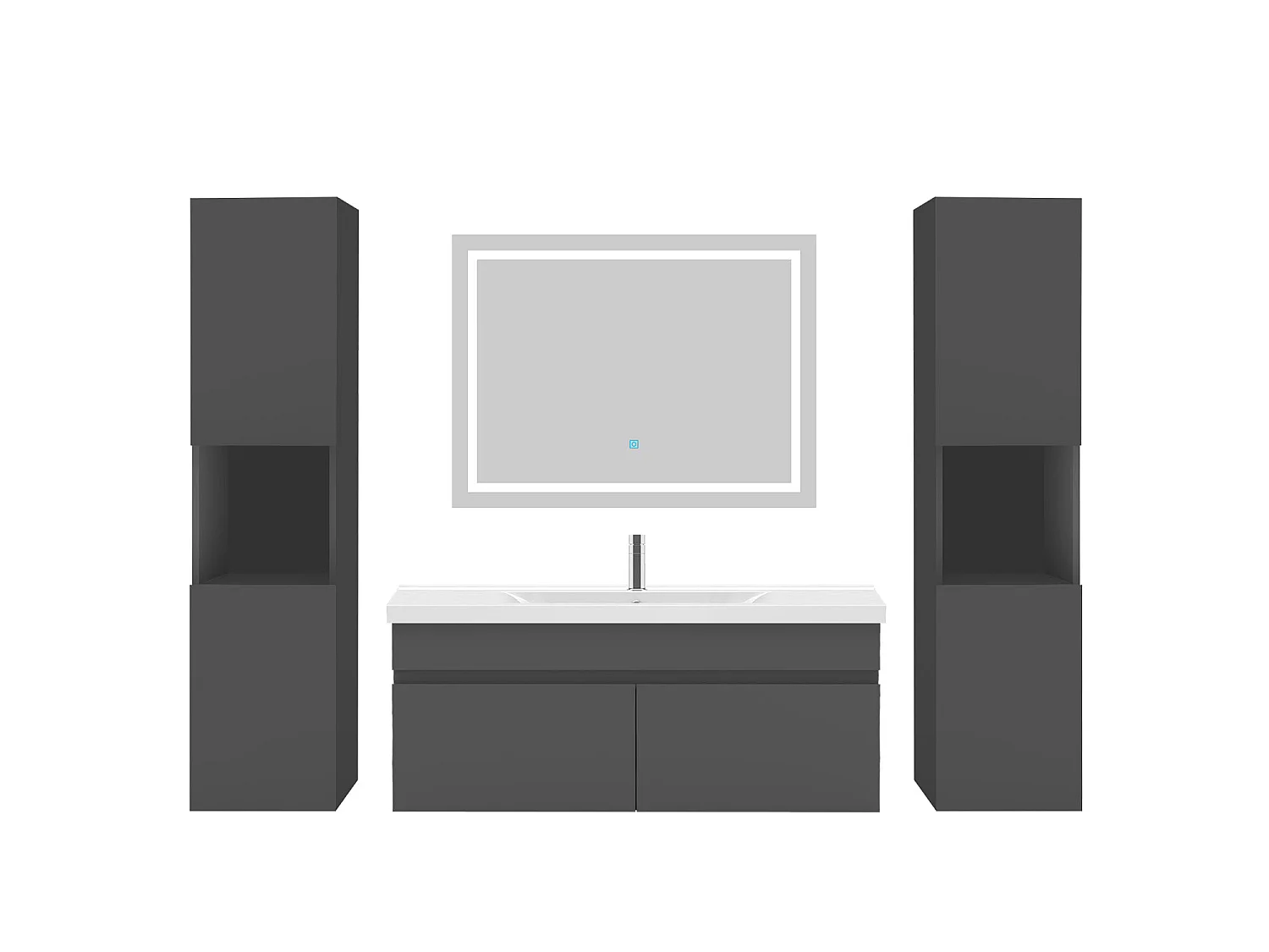 Ensemble muebles Salle De Bain 100cm simple vasque + colonne + miroir LED Anthracite 5pcs - Aica
