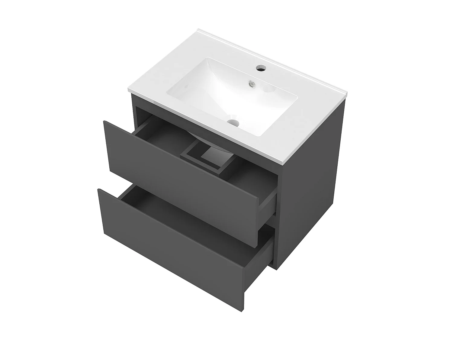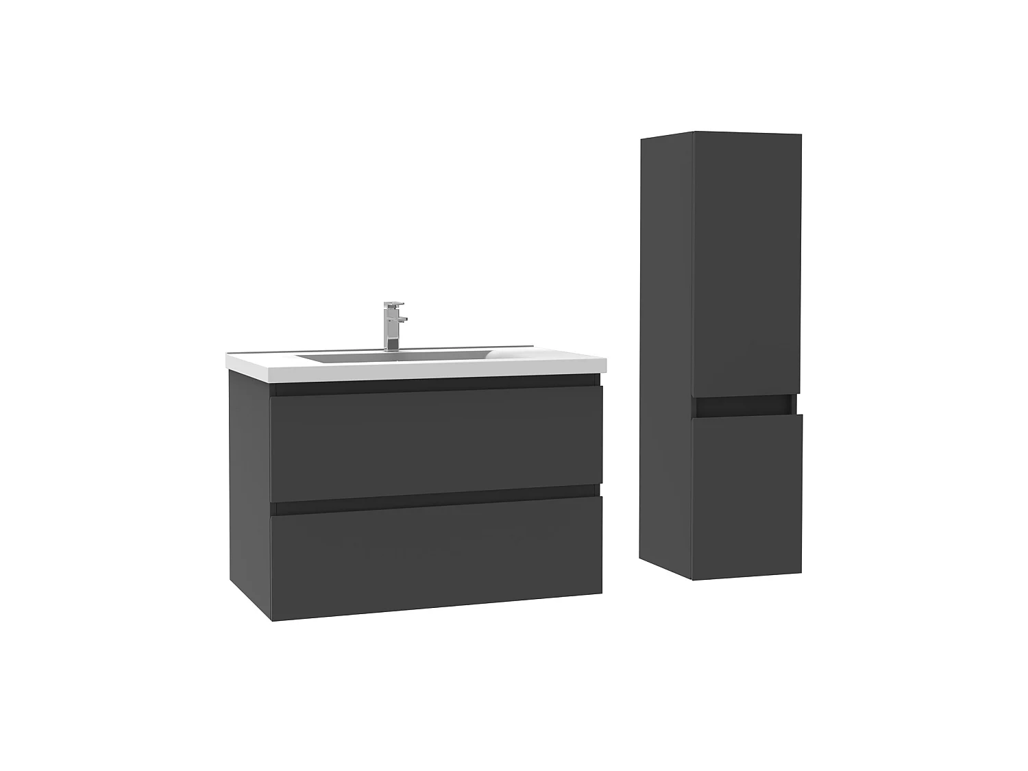 Ensemble muebles Salle De Bain 80cm Anthracite meuble avec colonne vasque ceramique - Aica