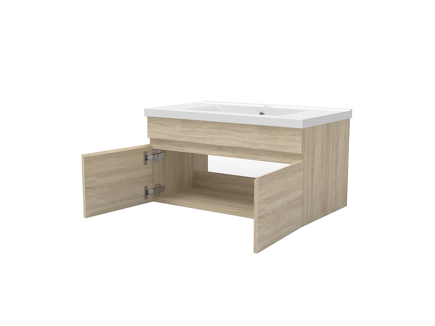 Ensemble muebles Salle De Bain 80cm simple vasque + colonne + miroir LED Chêne Wotan 5pcs - Aica