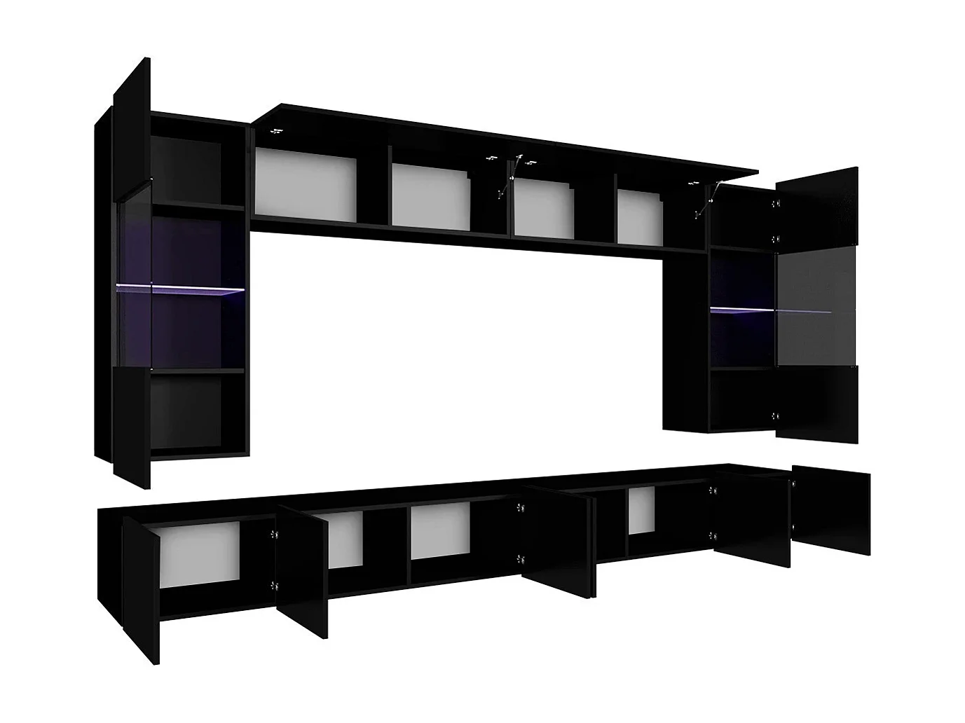 Ensemble Mural Montreal I - Noir & Blanc Brillant - LED Bleu