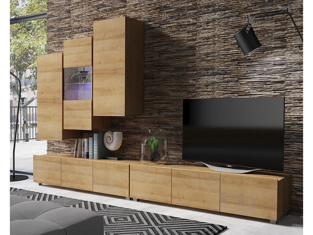 Ensemble Mural Montreal IX - Chêne Doré - LED Bleu