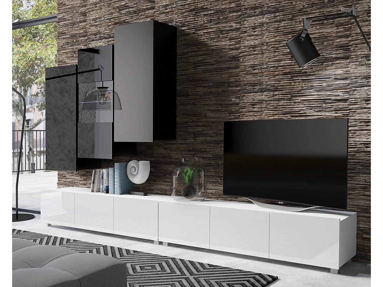 Ensemble Mural Montreal IX - Noir & Blanc Brillant - LED Bleu