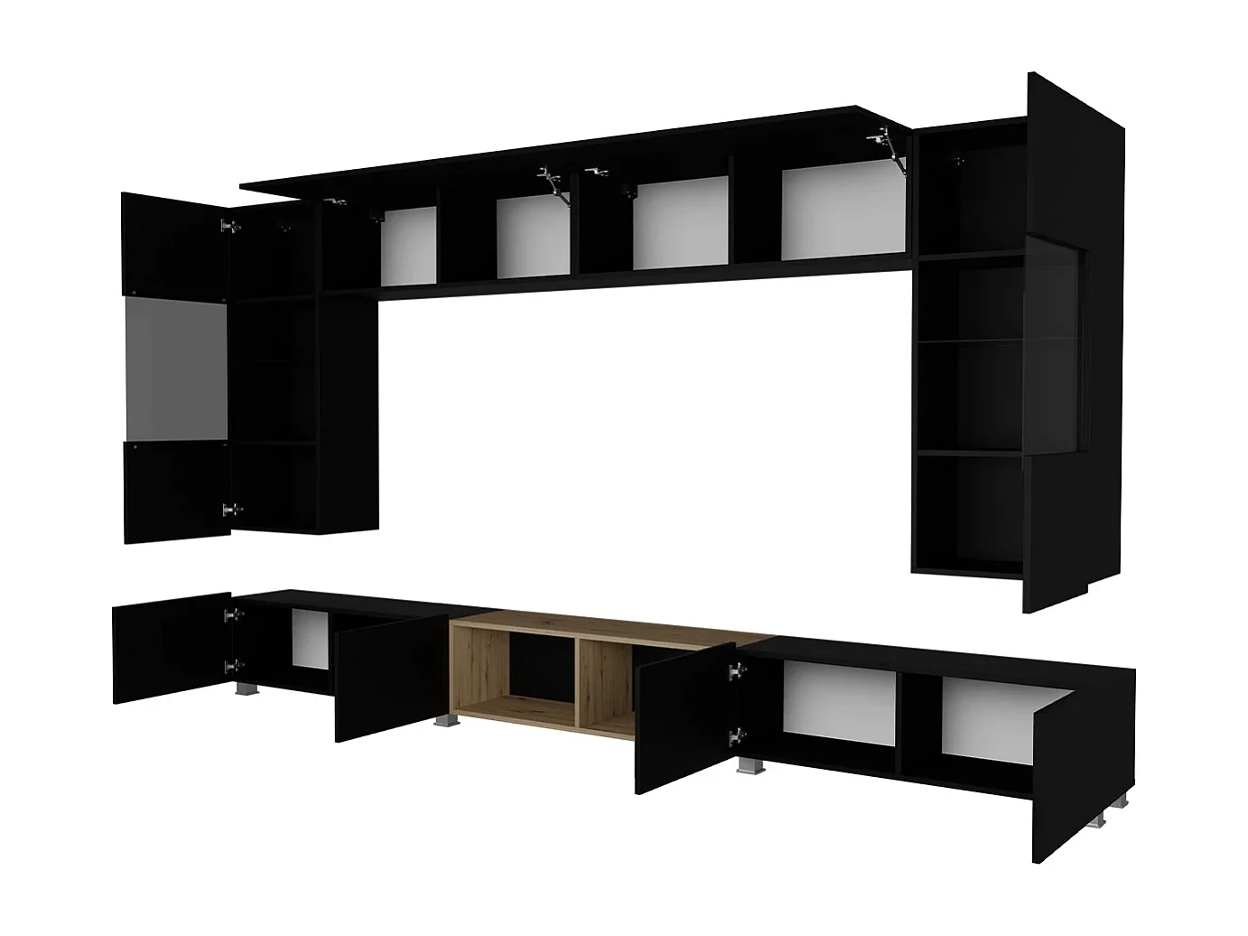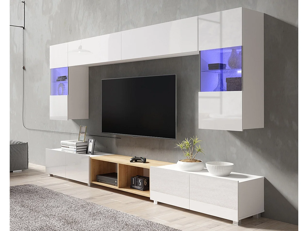 Ensemble Mural Montreal XIII - Blanc Brillant & Chêne Doré - LED Blanc
