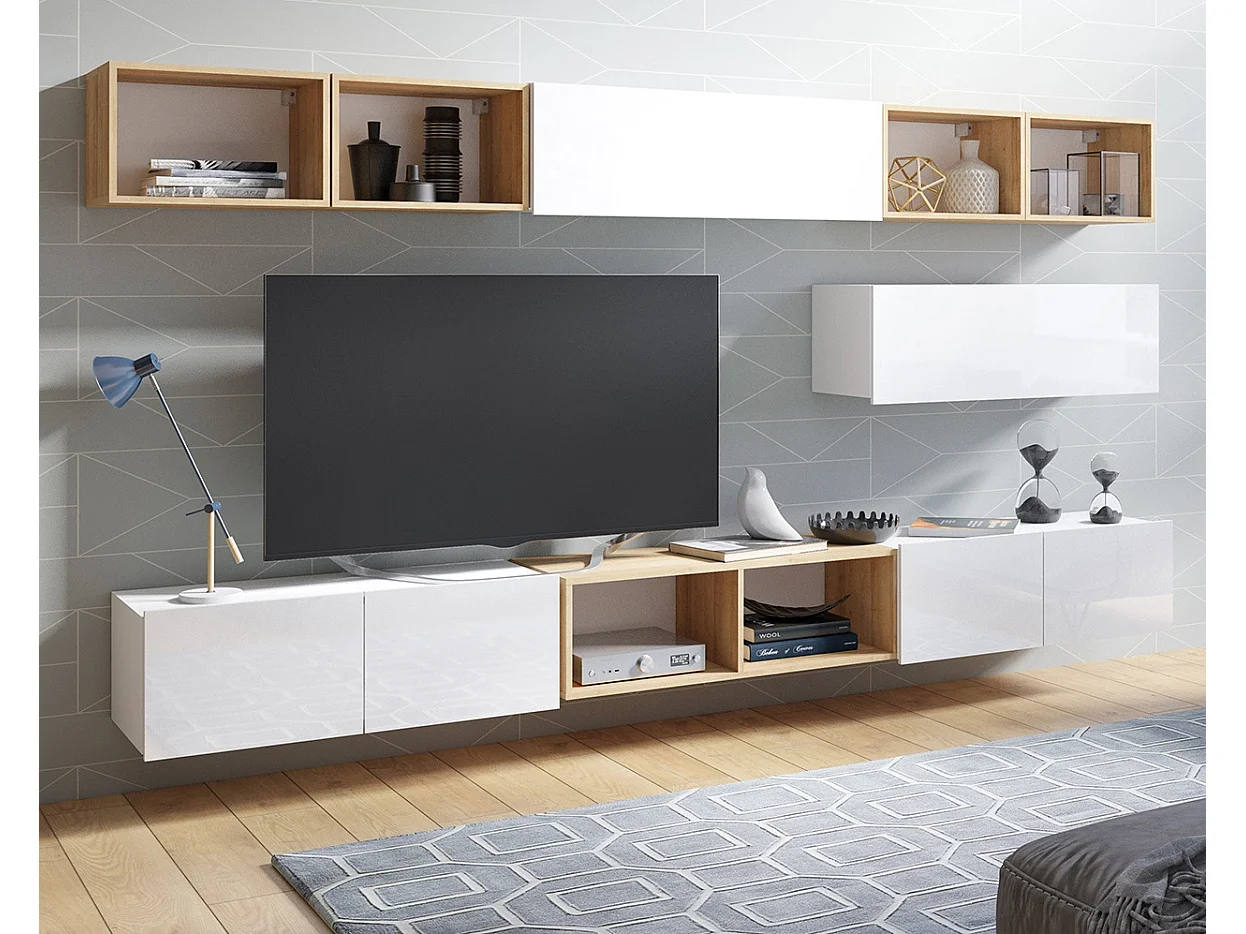 Ensemble Mural Montreal XV - Blanc Brillant & Chêne Doré