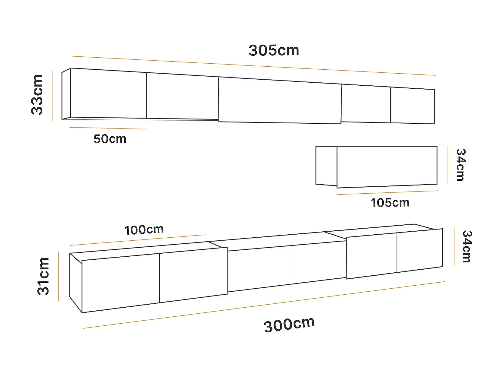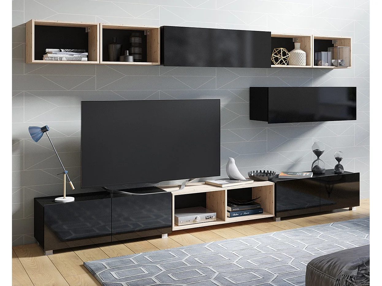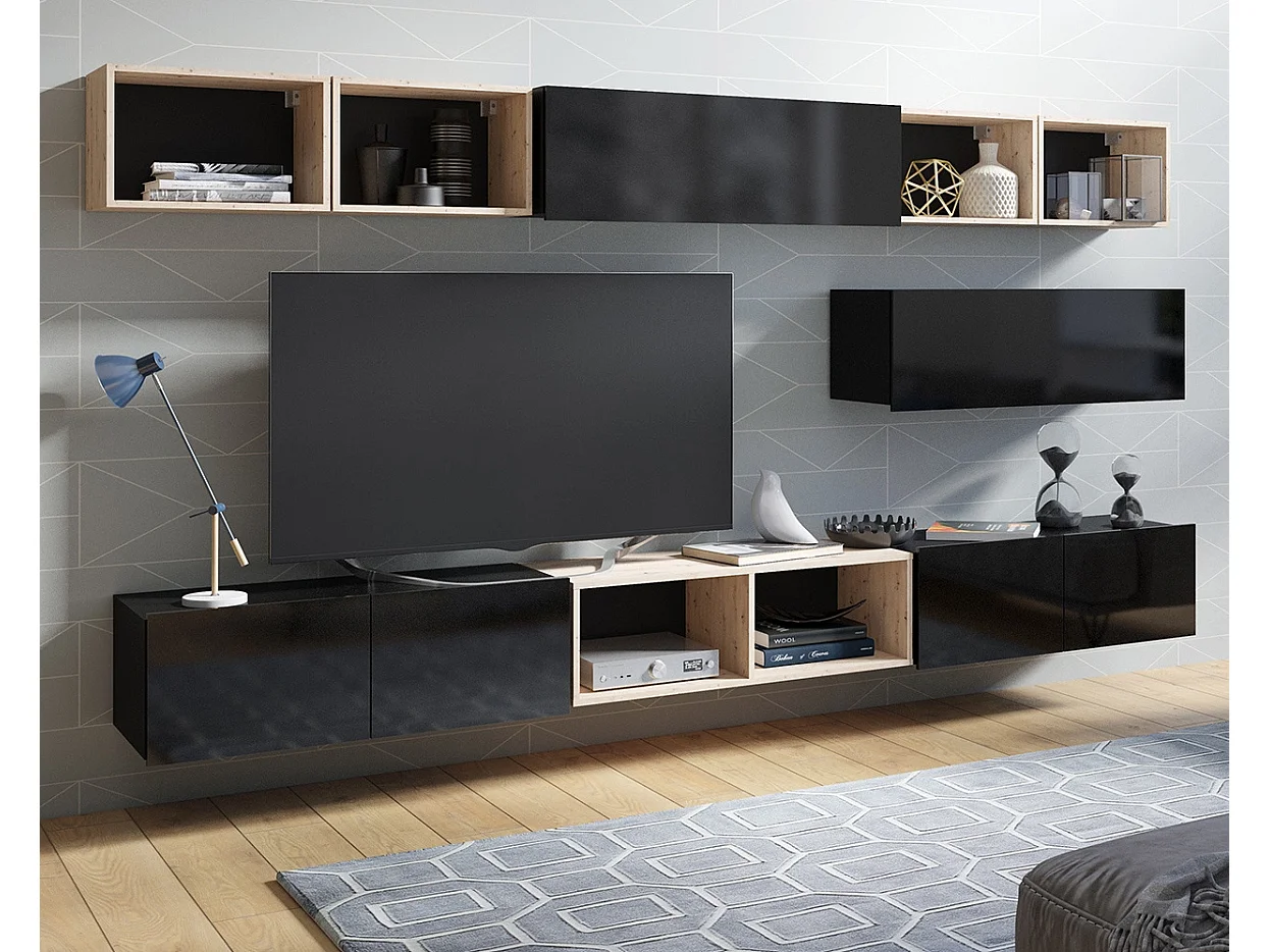 Ensemble Mural Montreal XV - Noir Brillant & Chêne Artisan