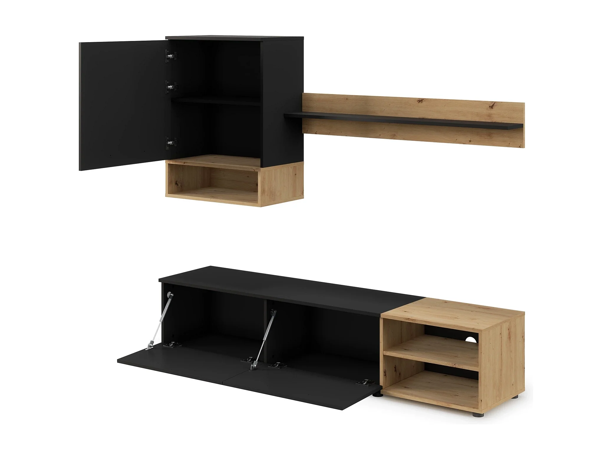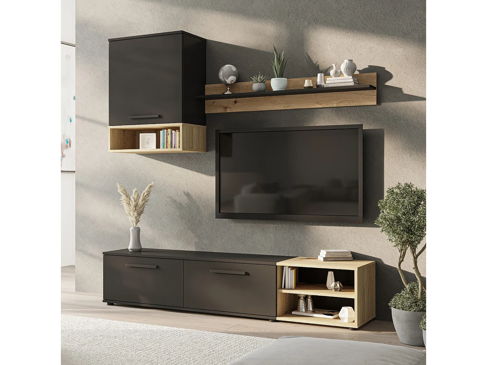 Ensemble mural TV Vento 180 cm - noir mat et chêne artisan