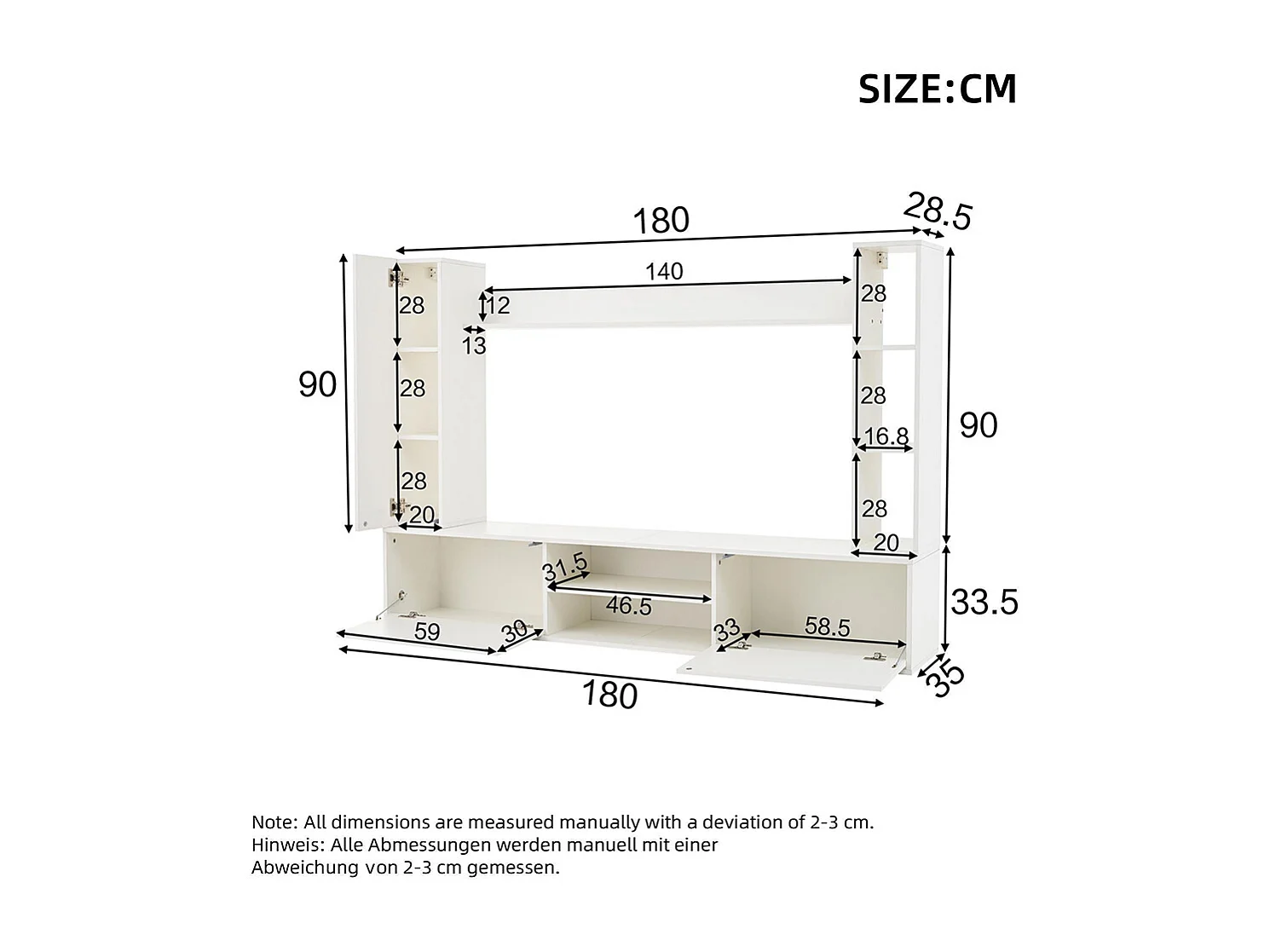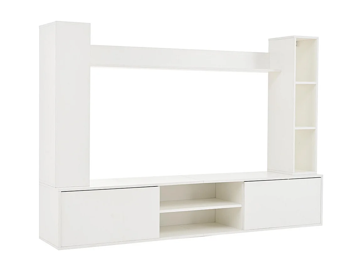 Ensemble mural TV vitrines 4 pièces meuble TV étagères pose suspendu blanc salon