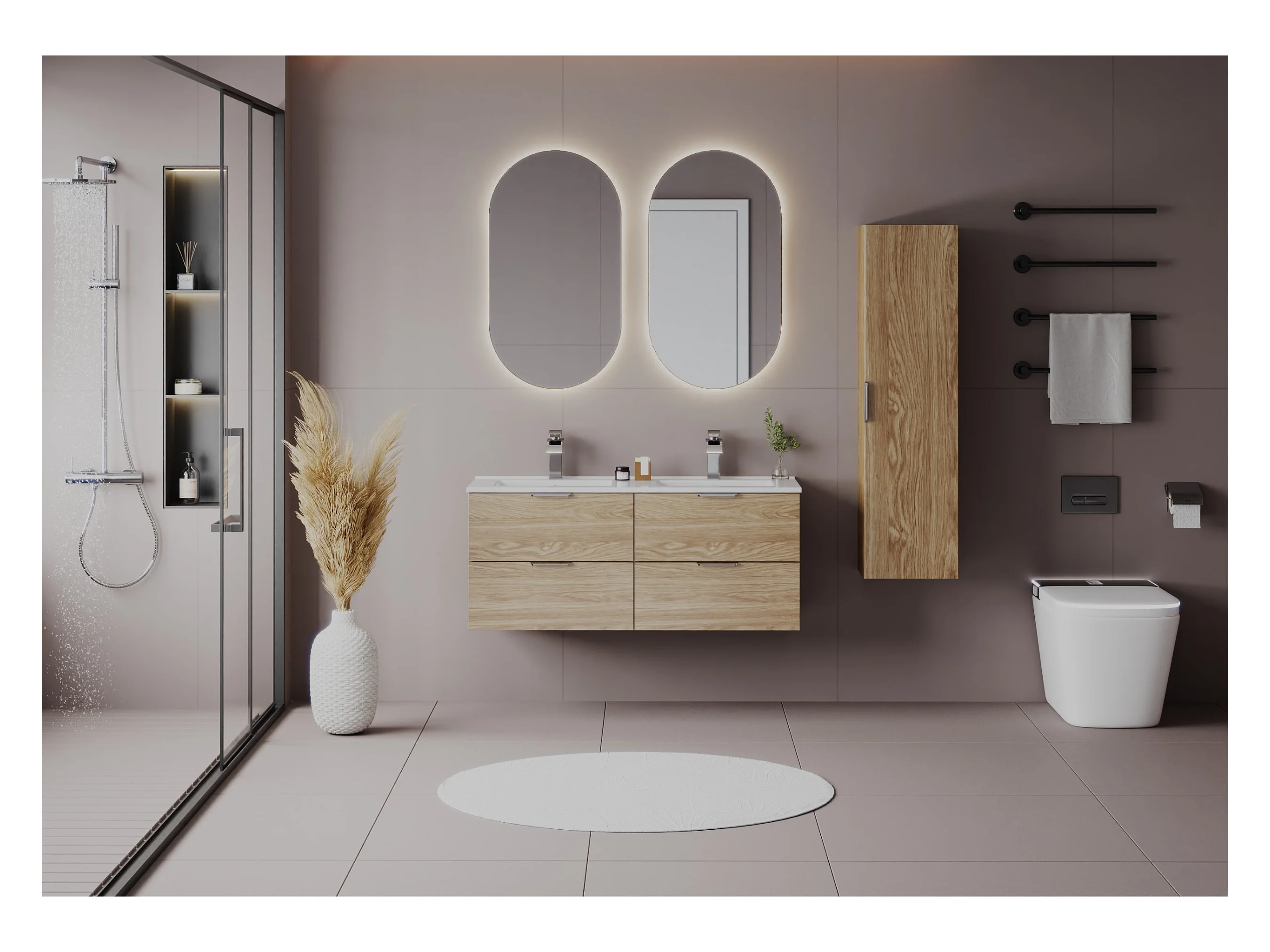 Ensemble pour salle de bain 120 cm Meuble avec lavabo Colonne Colonne Chêne huilé Pile