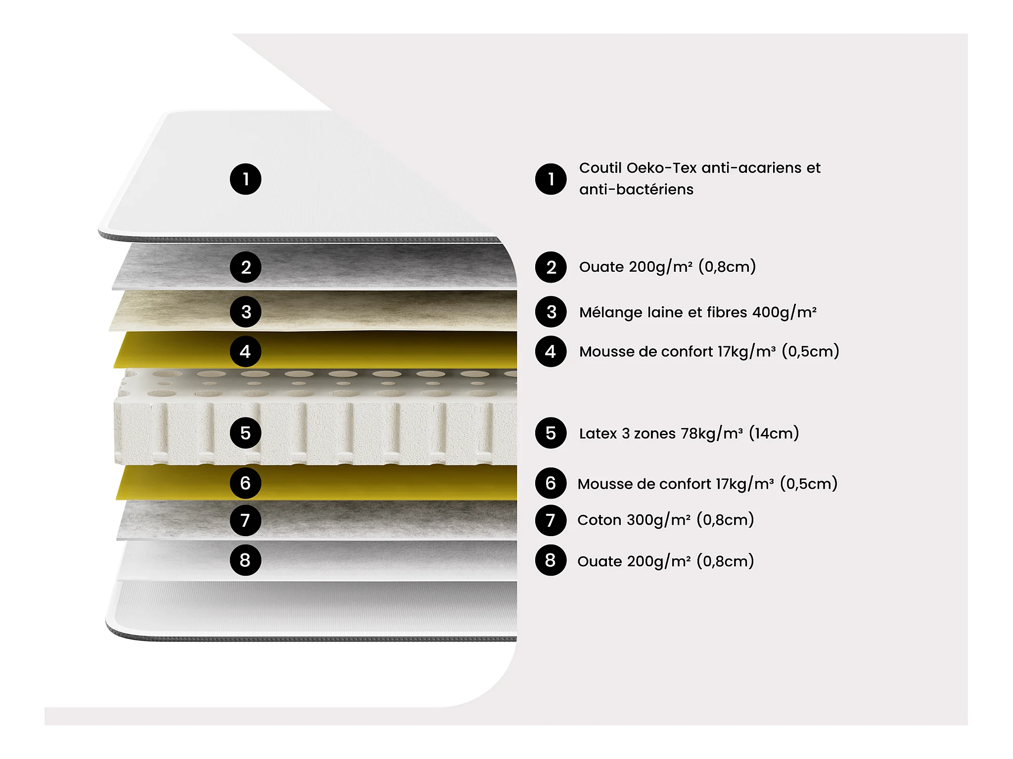 Lit électrique de relaxation lattes et plots + matelas 100% latex 3 zones - 2 x 80 x 200 cm - Blanc - MENELAS de YSMÉE