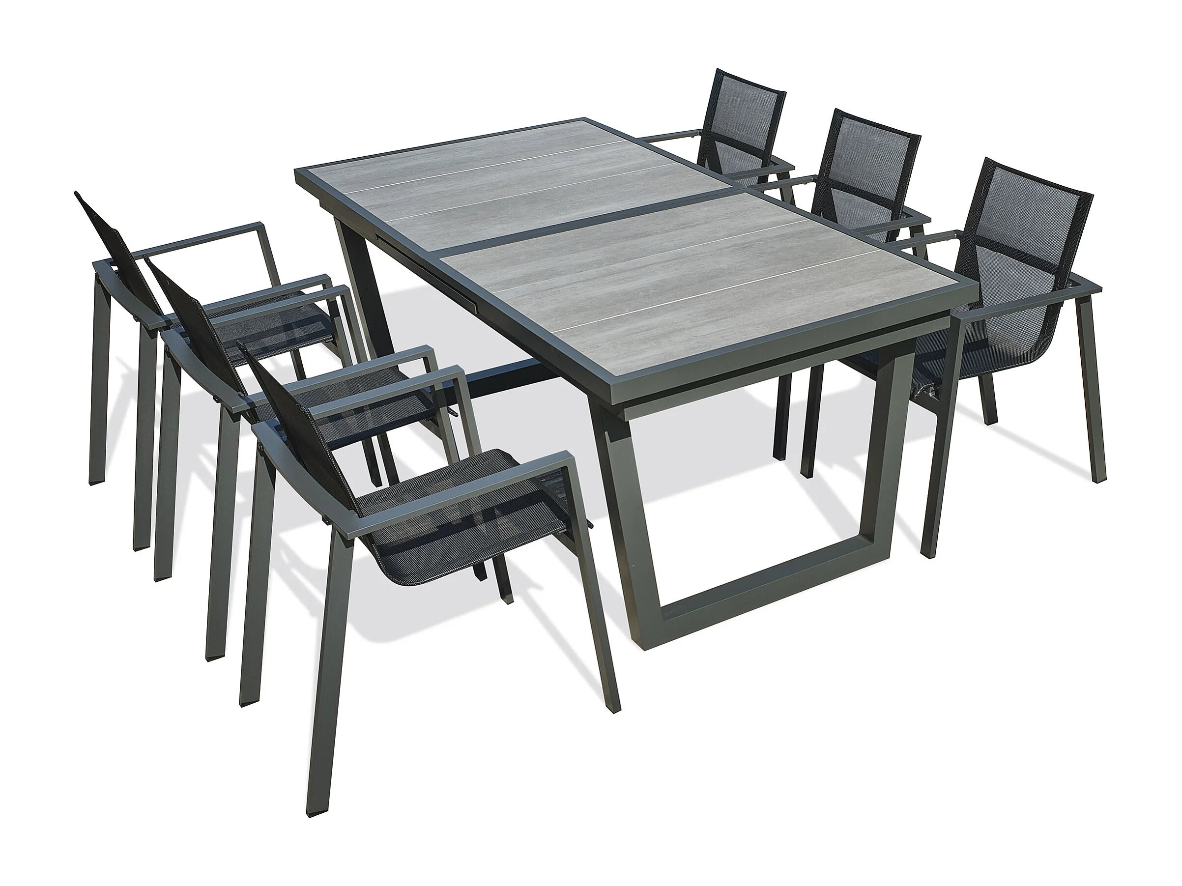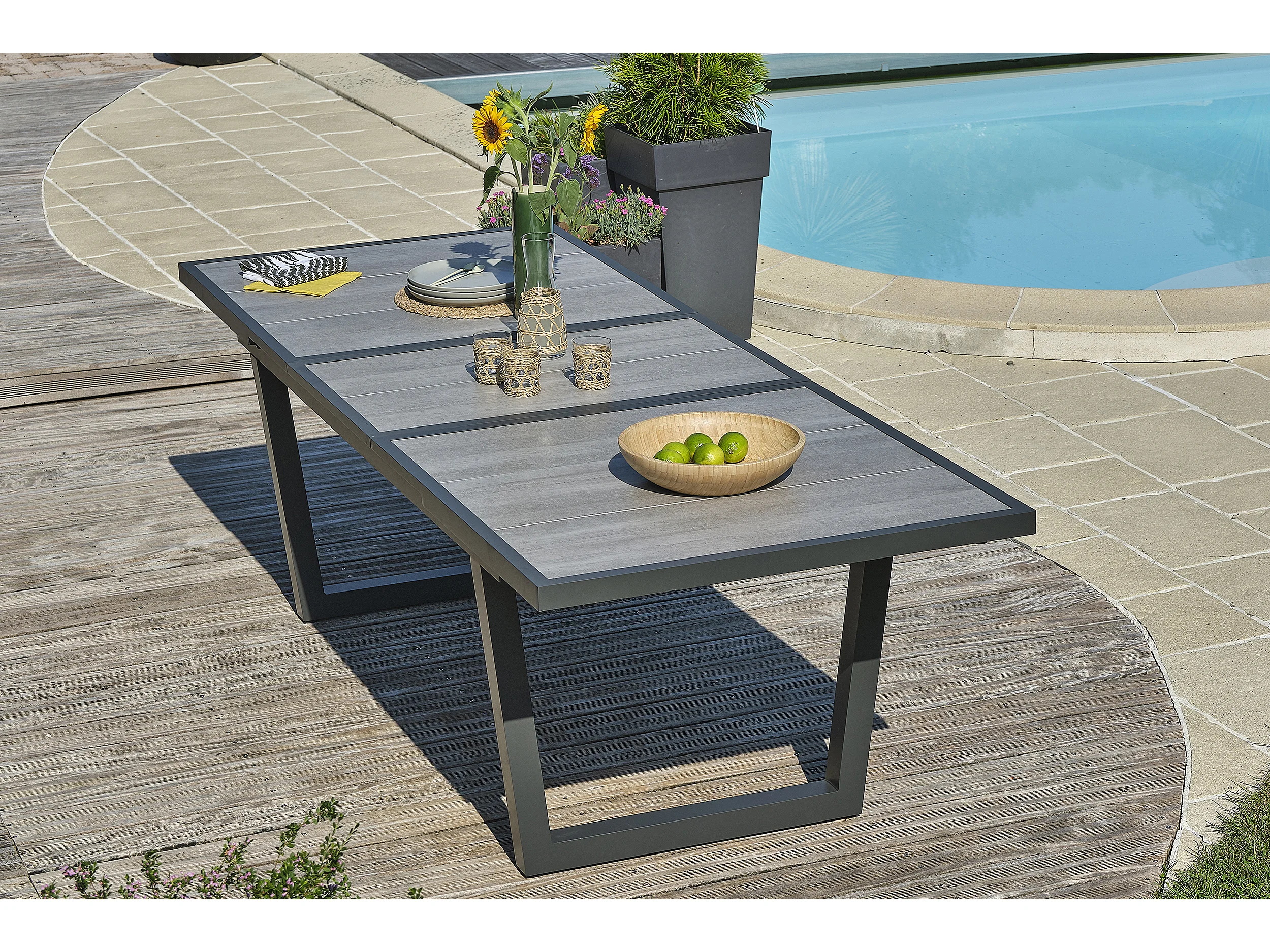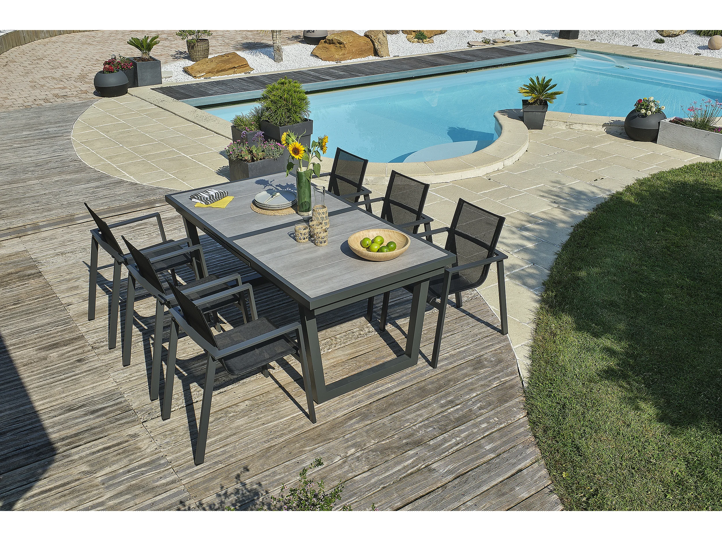 Ensemble repas 6 places en aluminium et plateau céramique