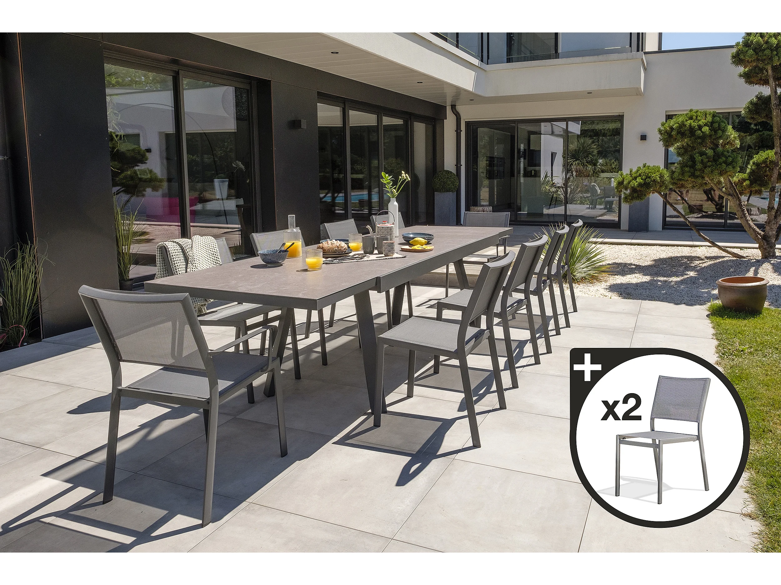 Ensemble repas de jardin 12 places en céramique sur verre - STOCKHOLM
