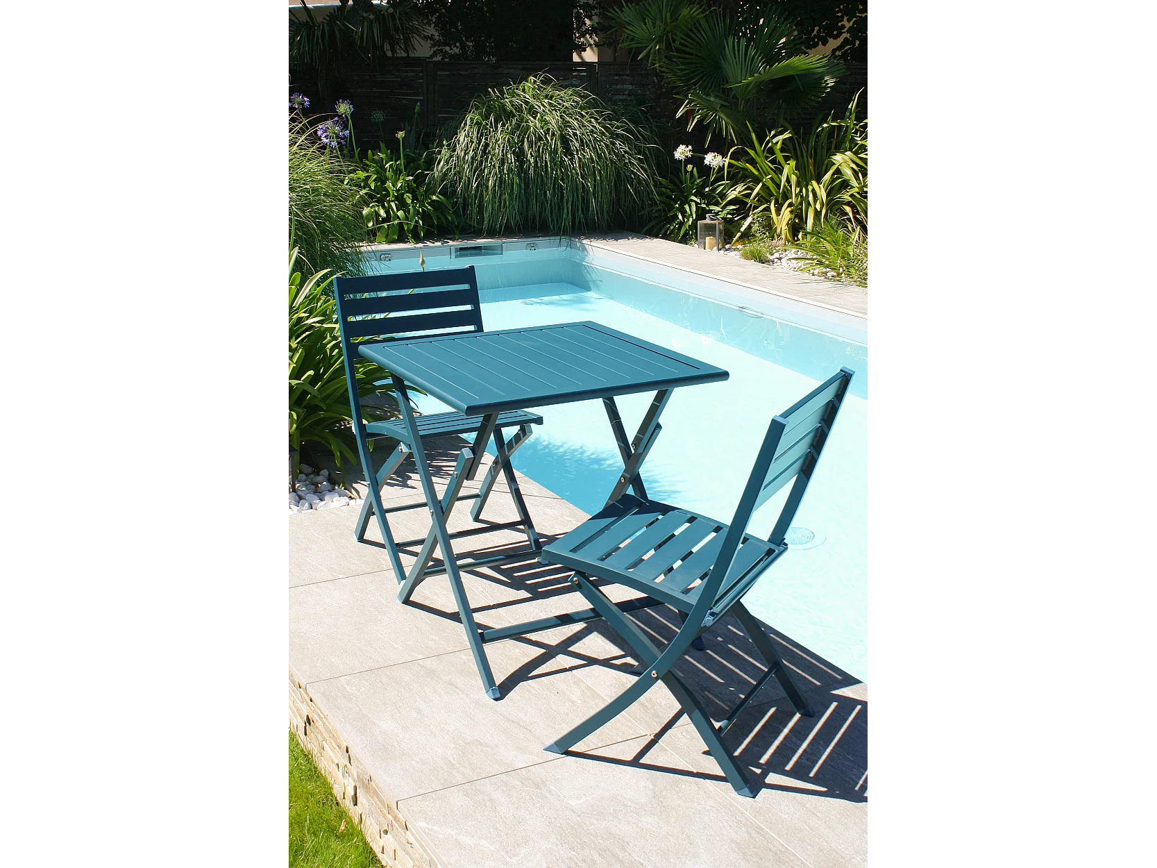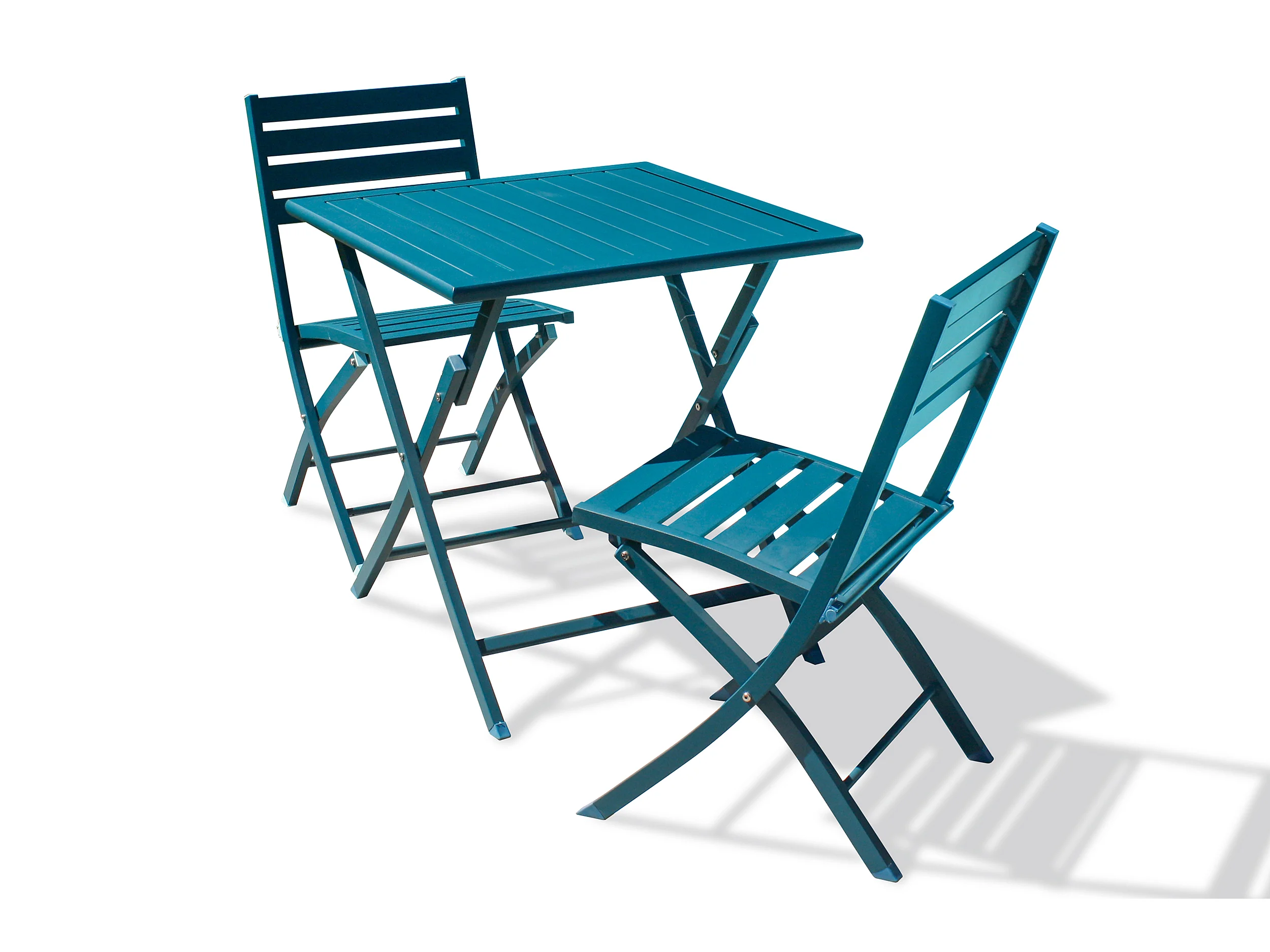 Ensemble repas de jardin 2 places en aluminium bleu canard