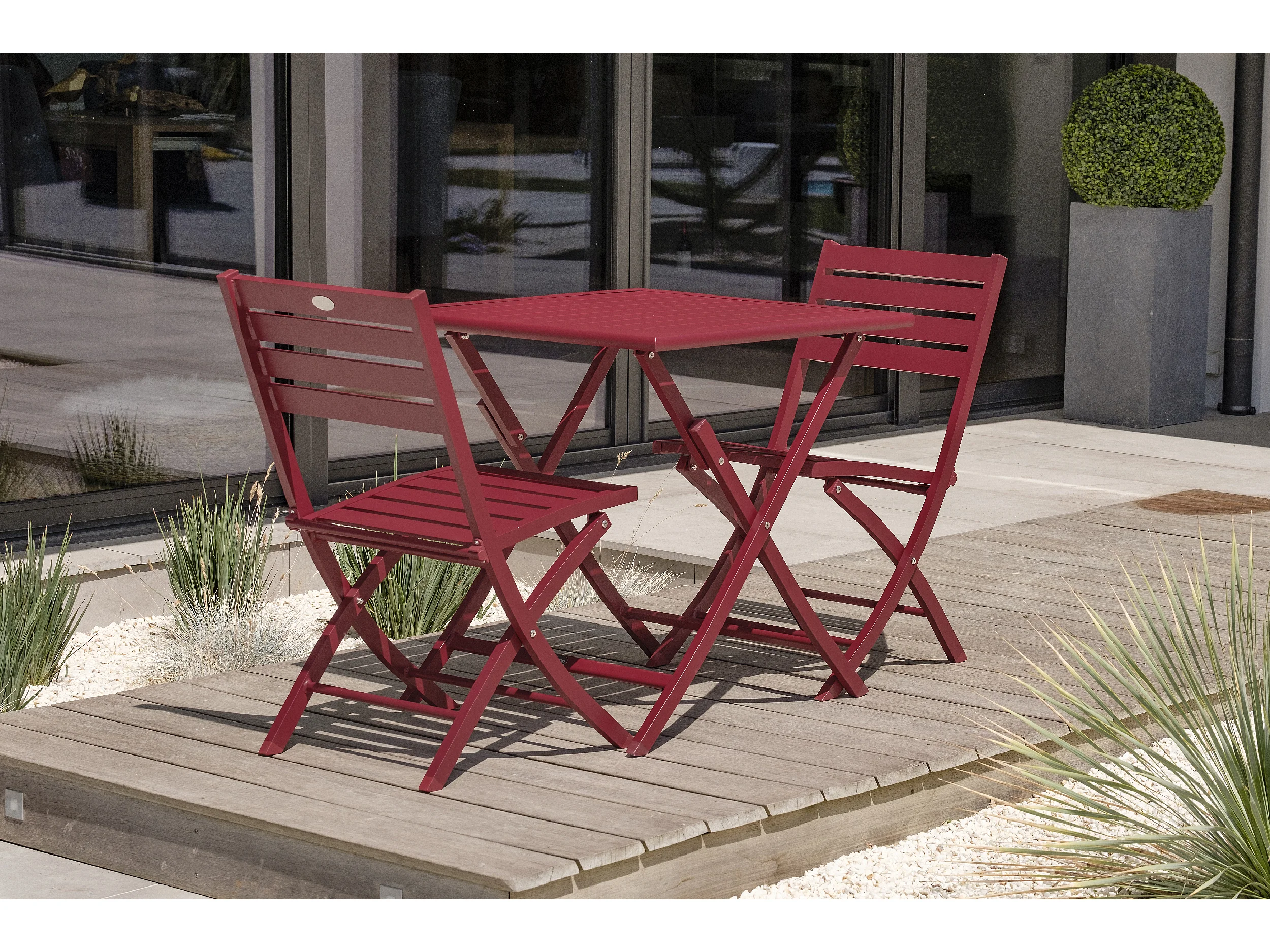 Ensemble repas de jardin 2 places en aluminium rouge carmin