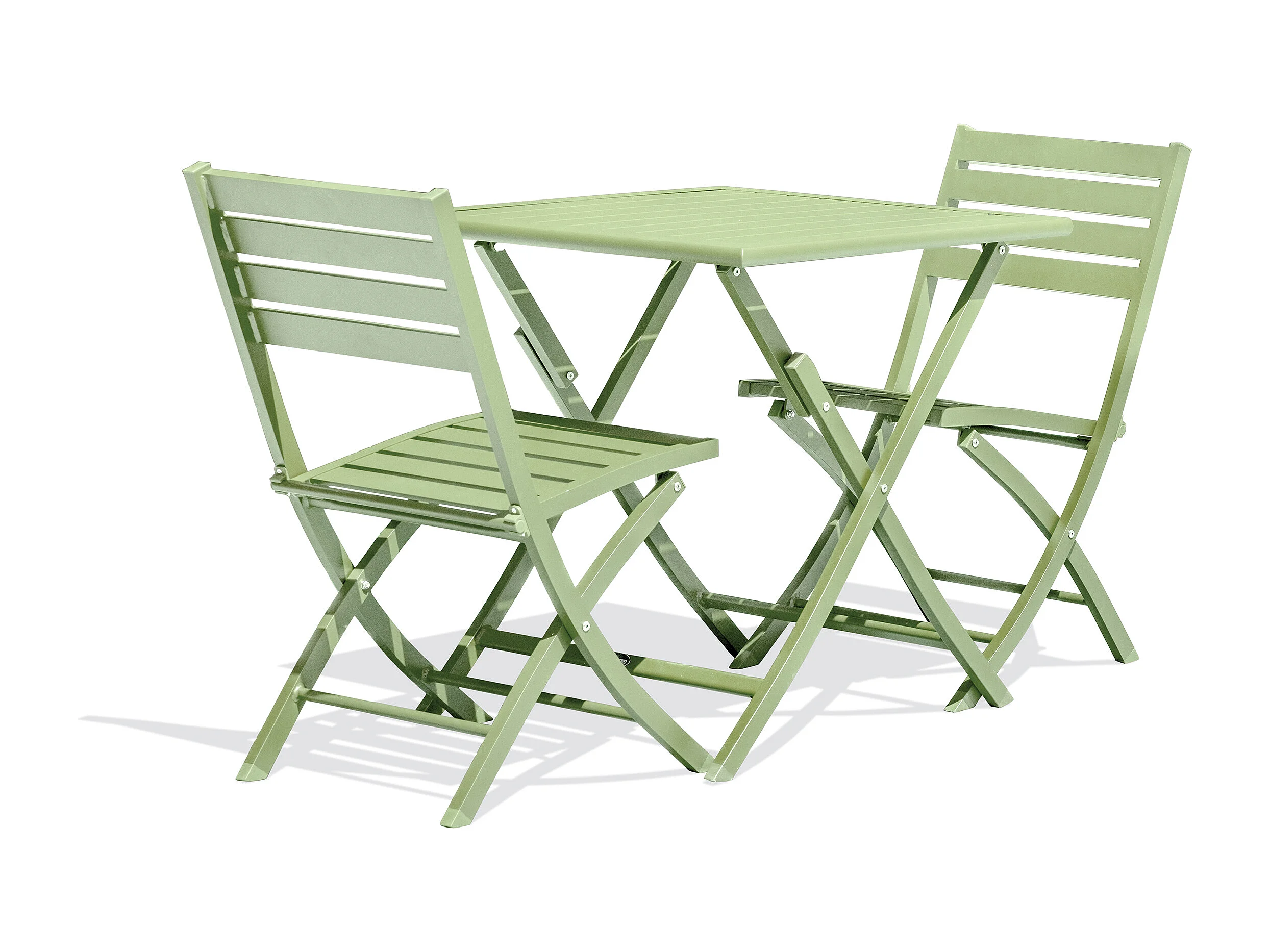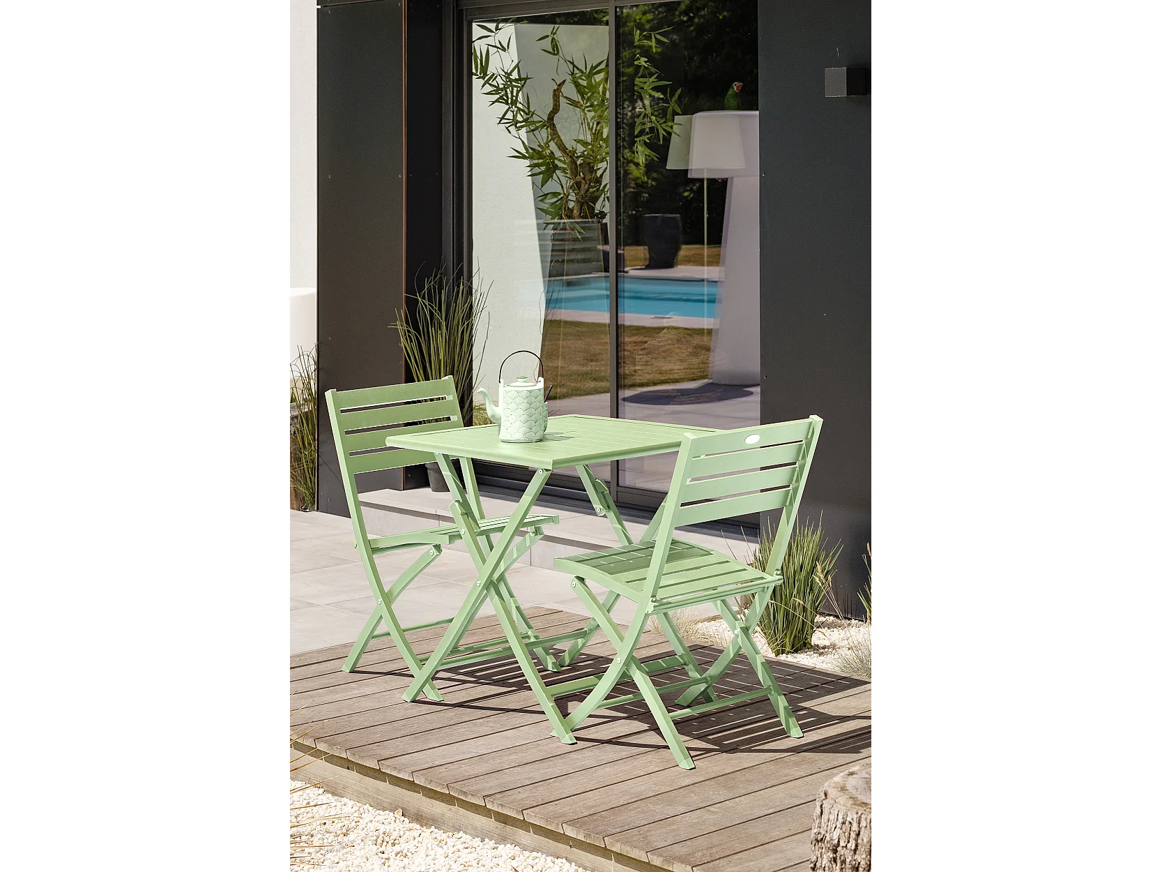 Ensemble repas de jardin 2 places en aluminium vert lagune