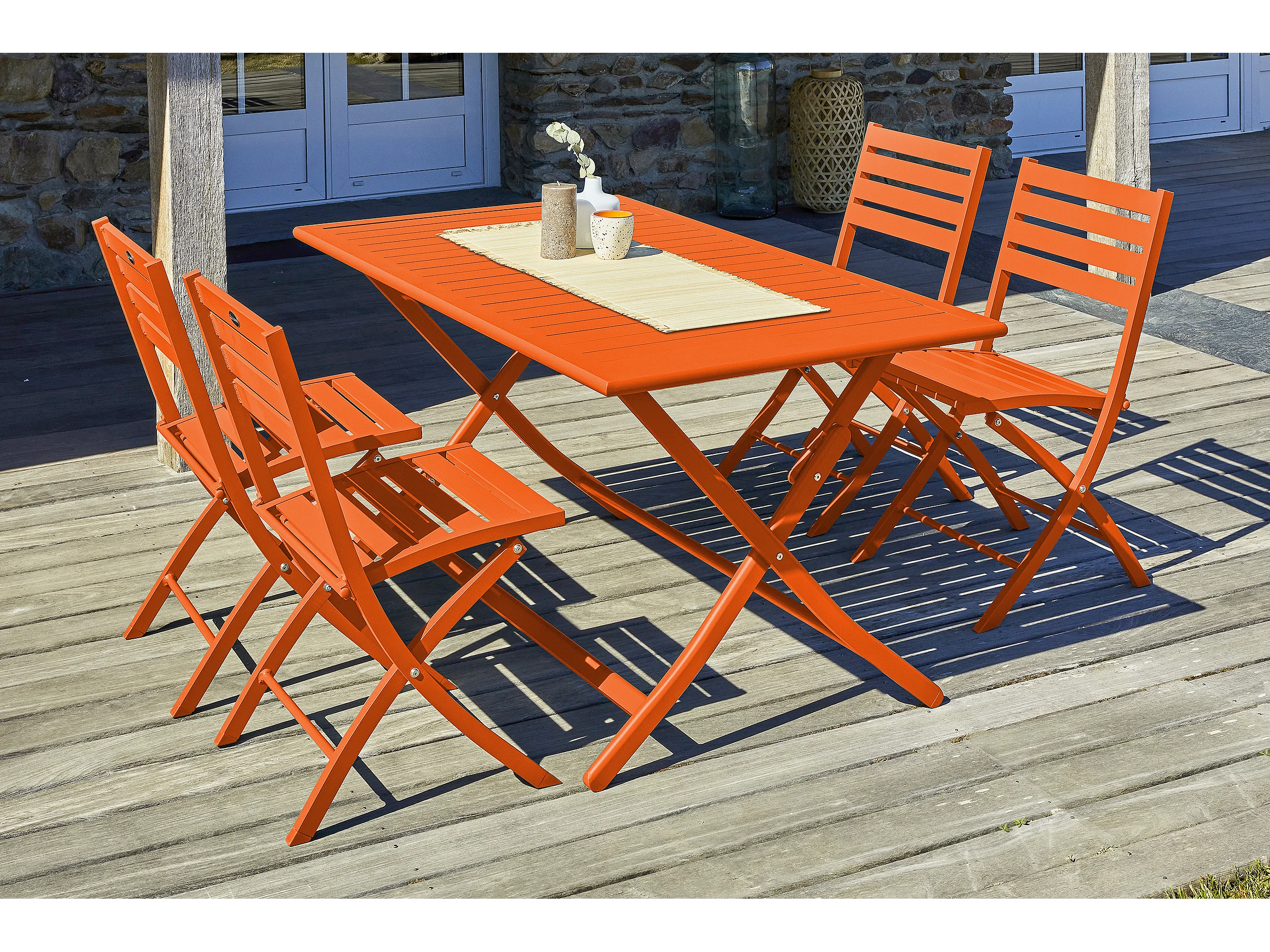 Ensemble repas de jardin 4 places en aluminium orange