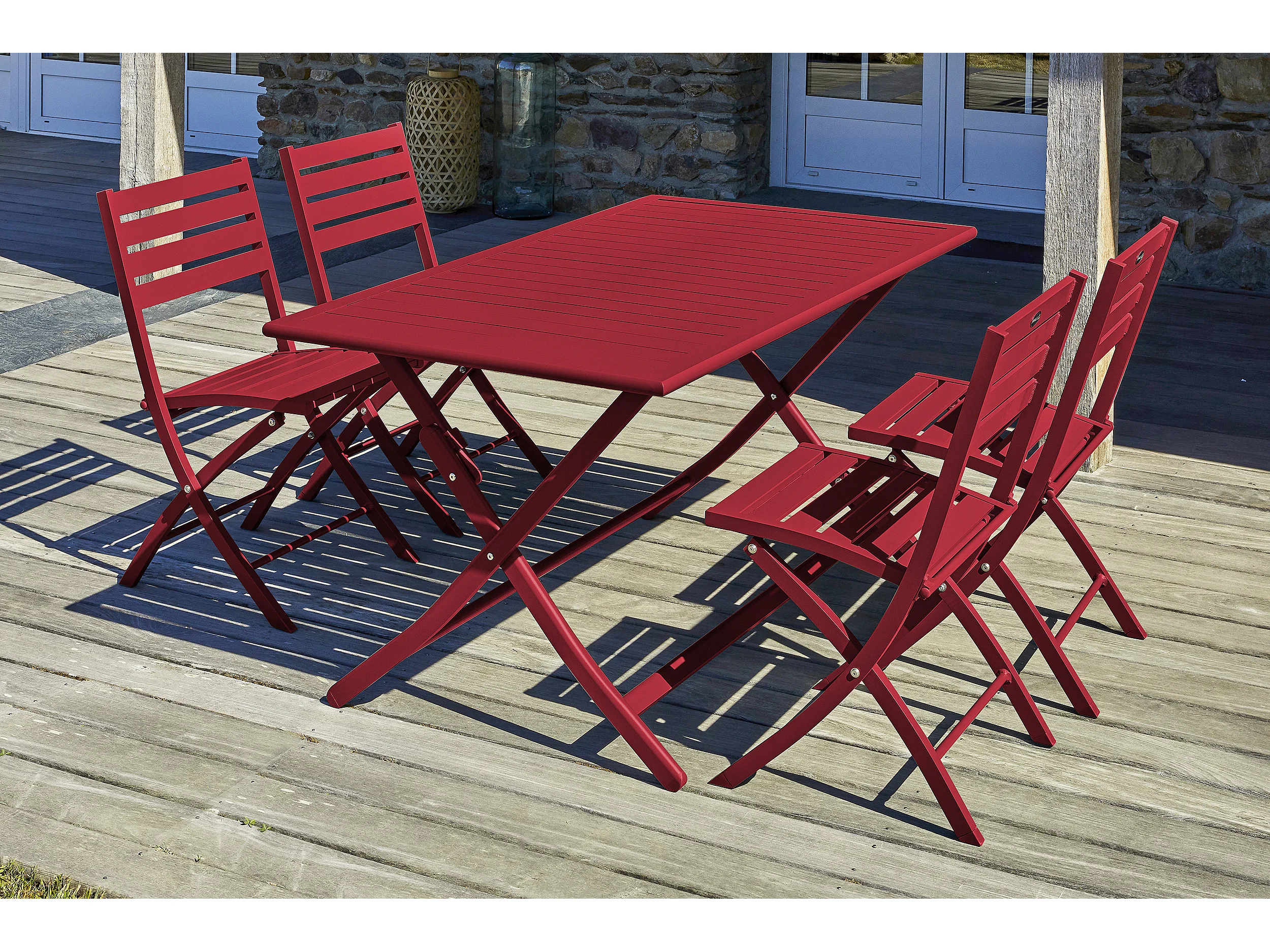 Ensemble repas de jardin 4 places en aluminium rouge carmin
