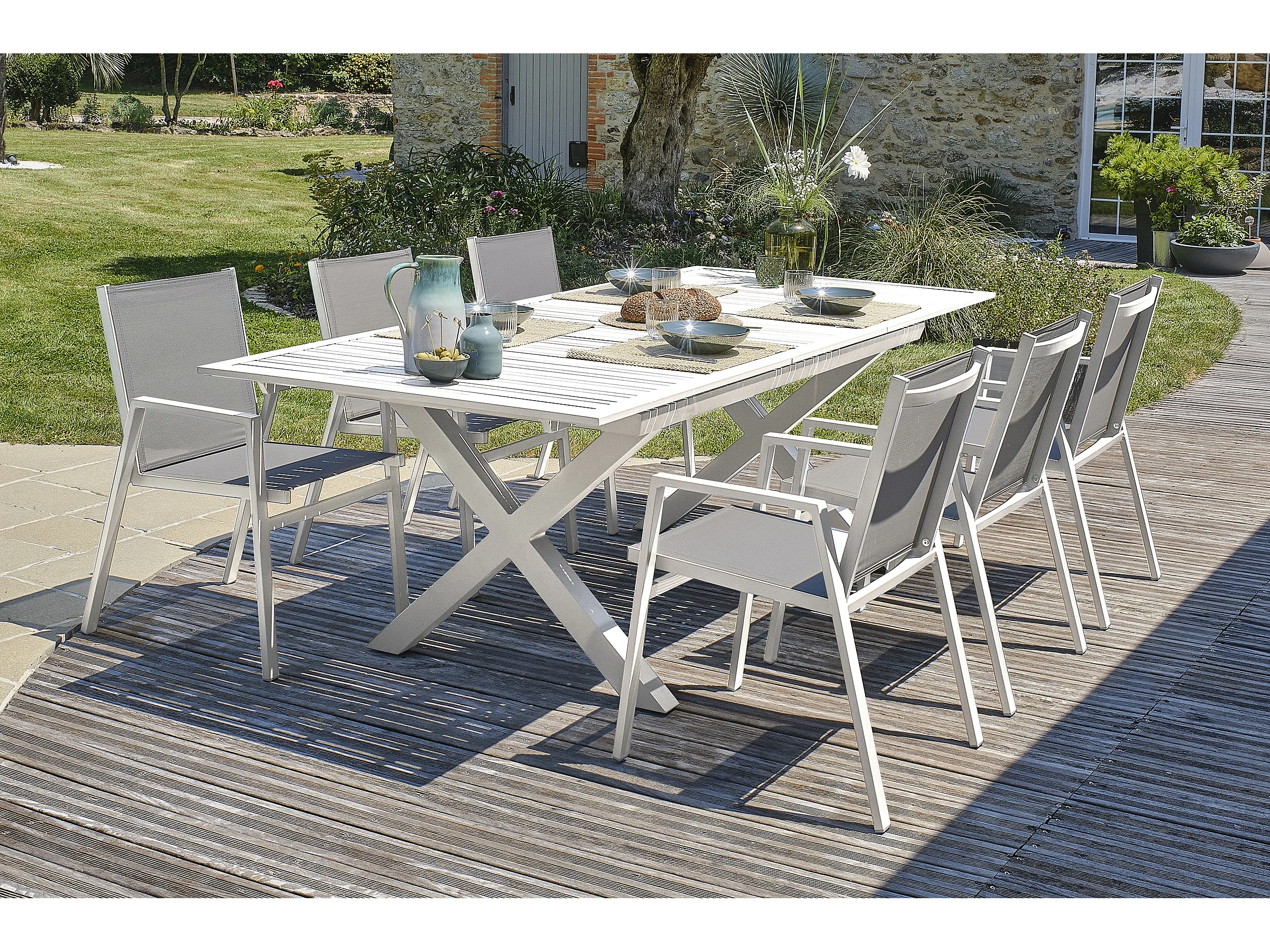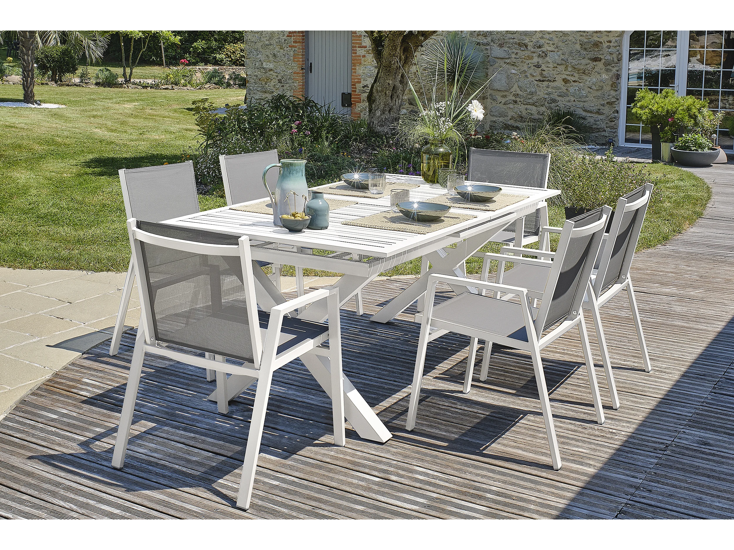 Ensemble repas de jardin 6 places en aluminium