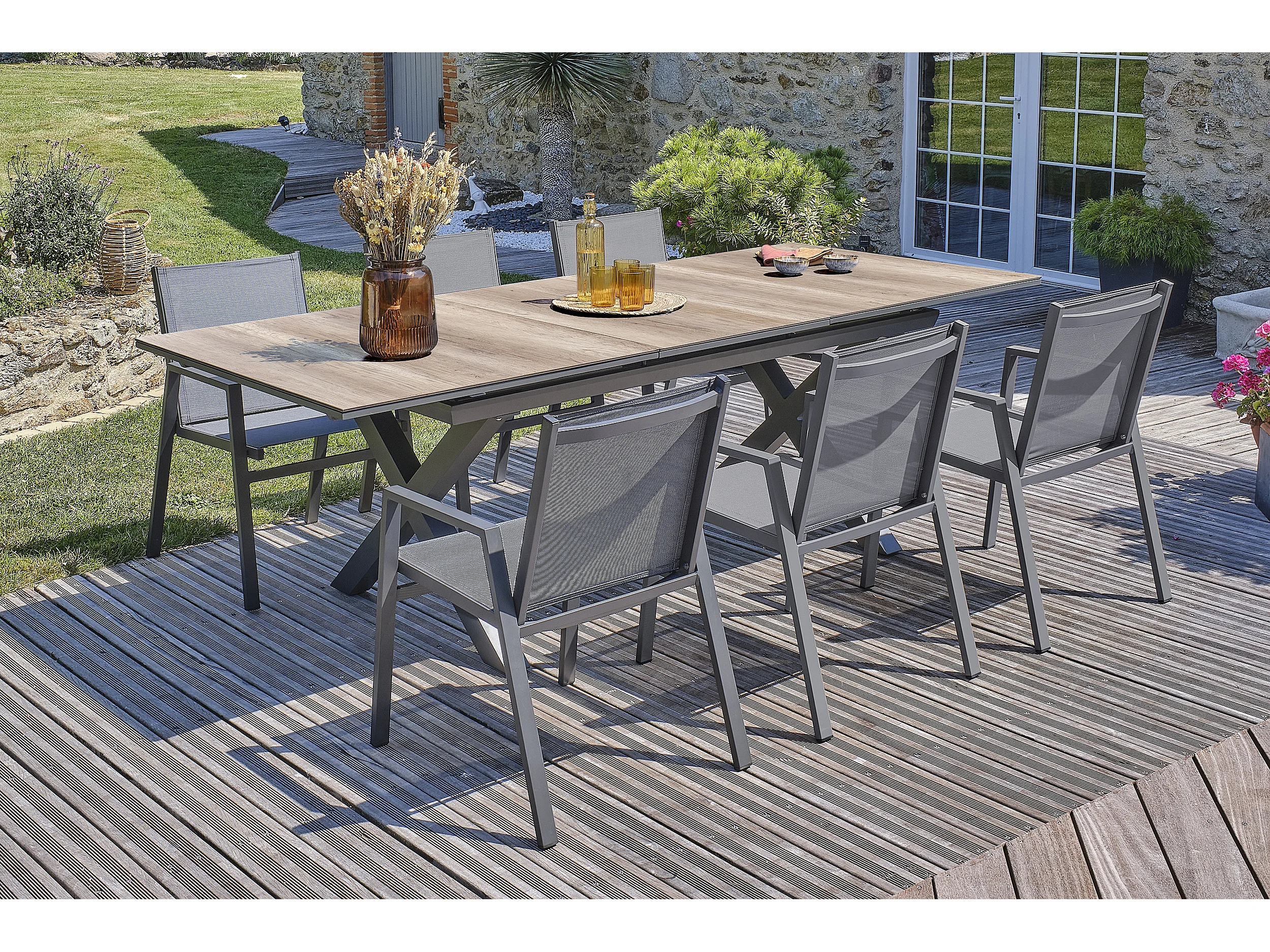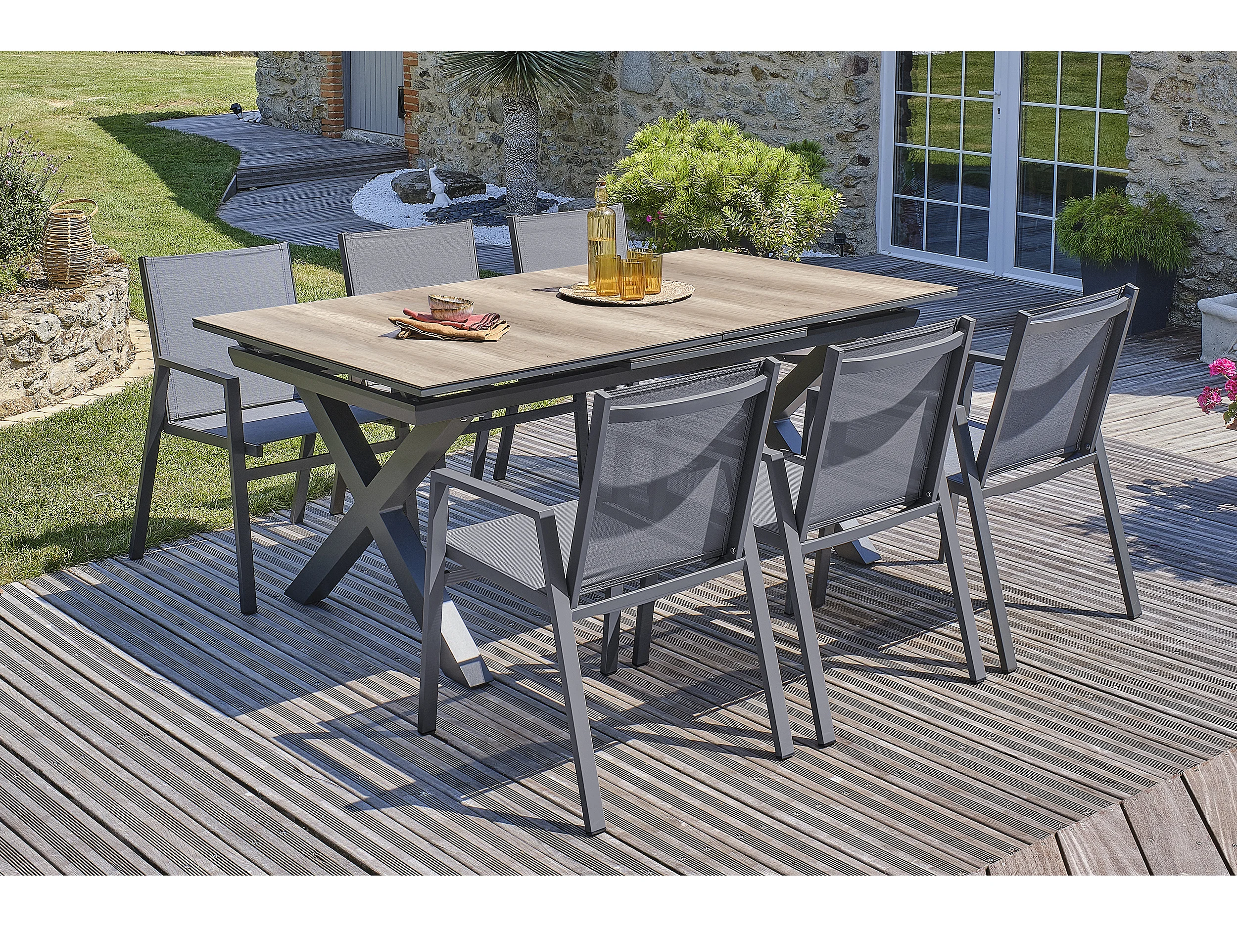 Ensemble repas de jardin 6 places en aluminium