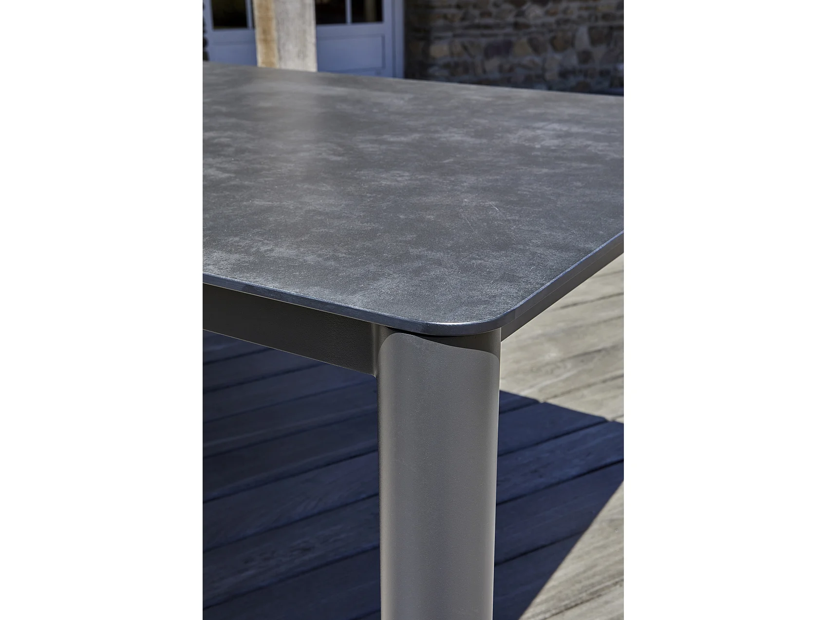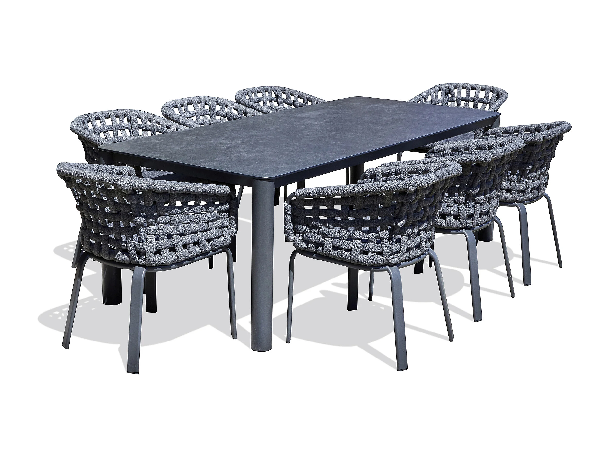 Ensemble repas de jardin 8 pl en alu plateau céramique sur verre