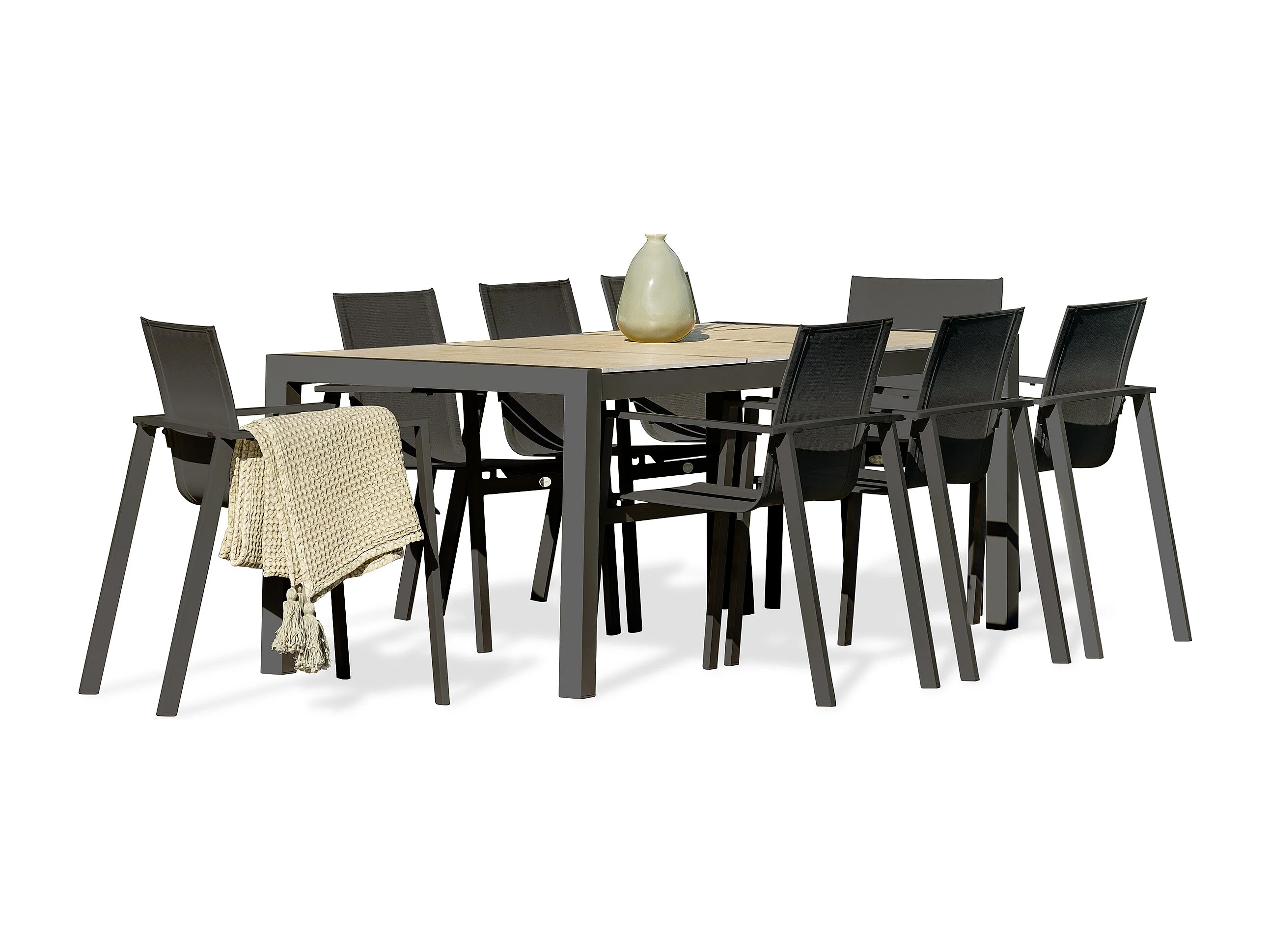 Ensemble repas de jardin 8 places avec plateau céramique
