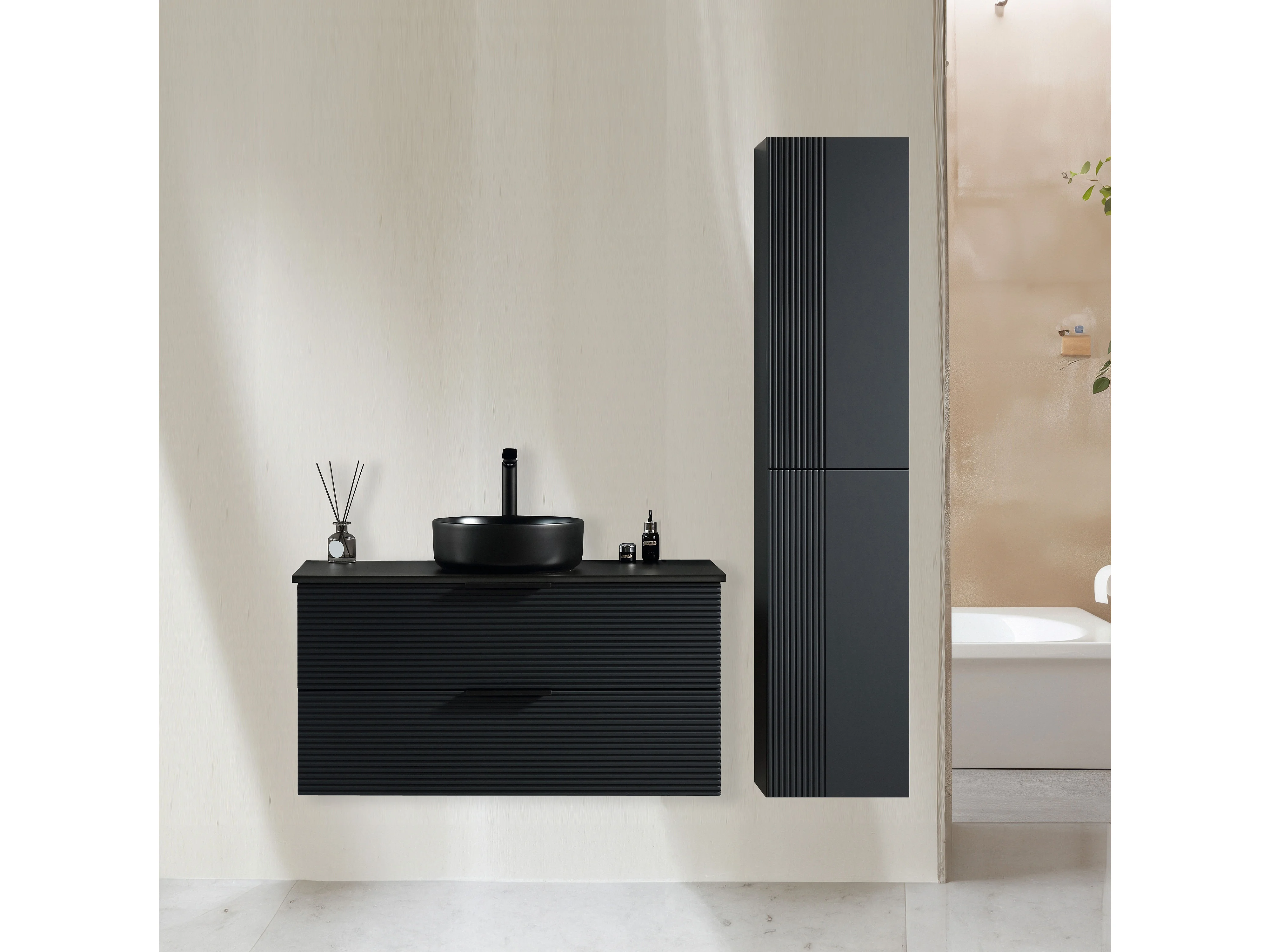 Ensemble salle de bain 120 cm noir vasque à poser noir Aqualinea