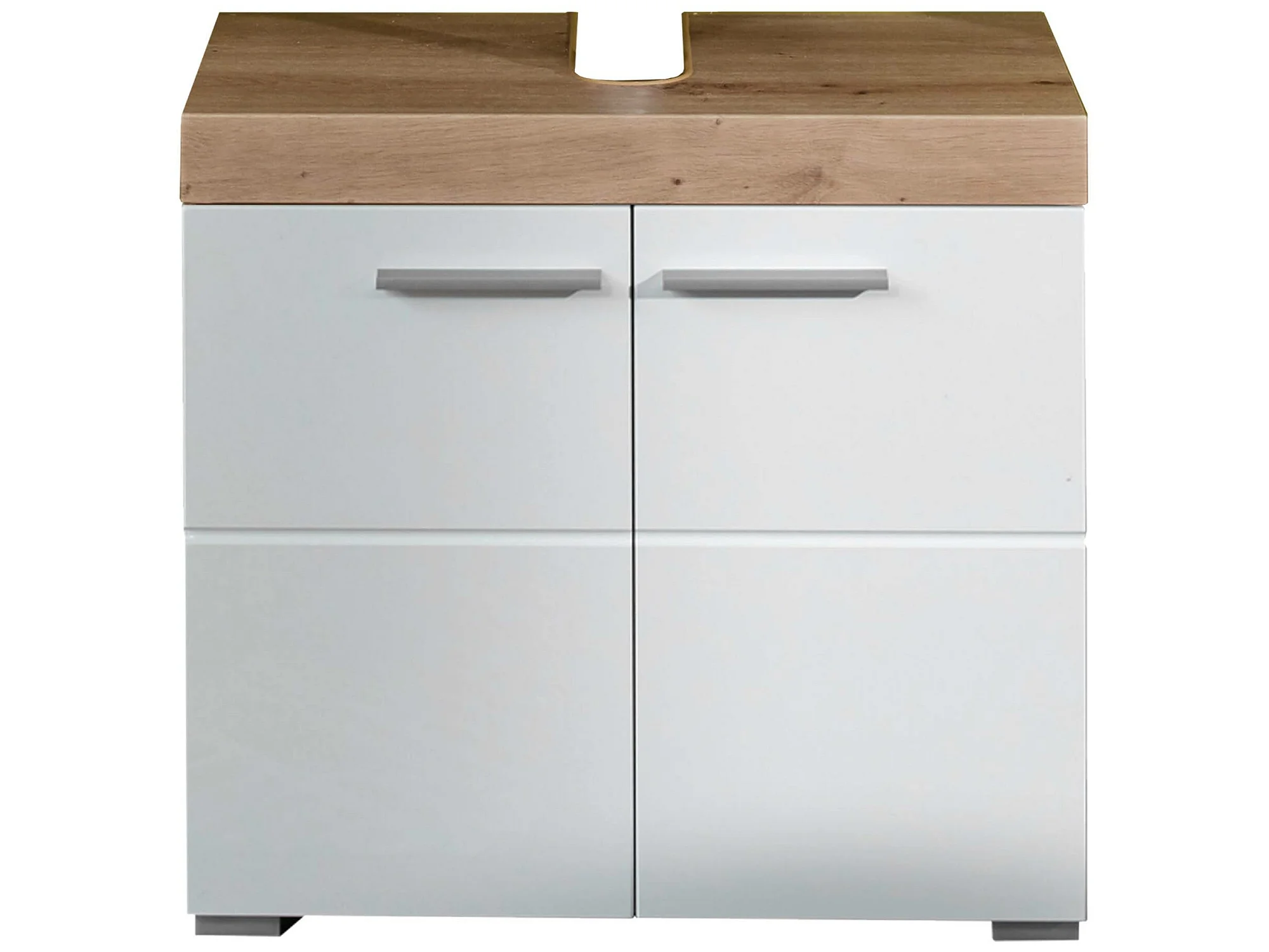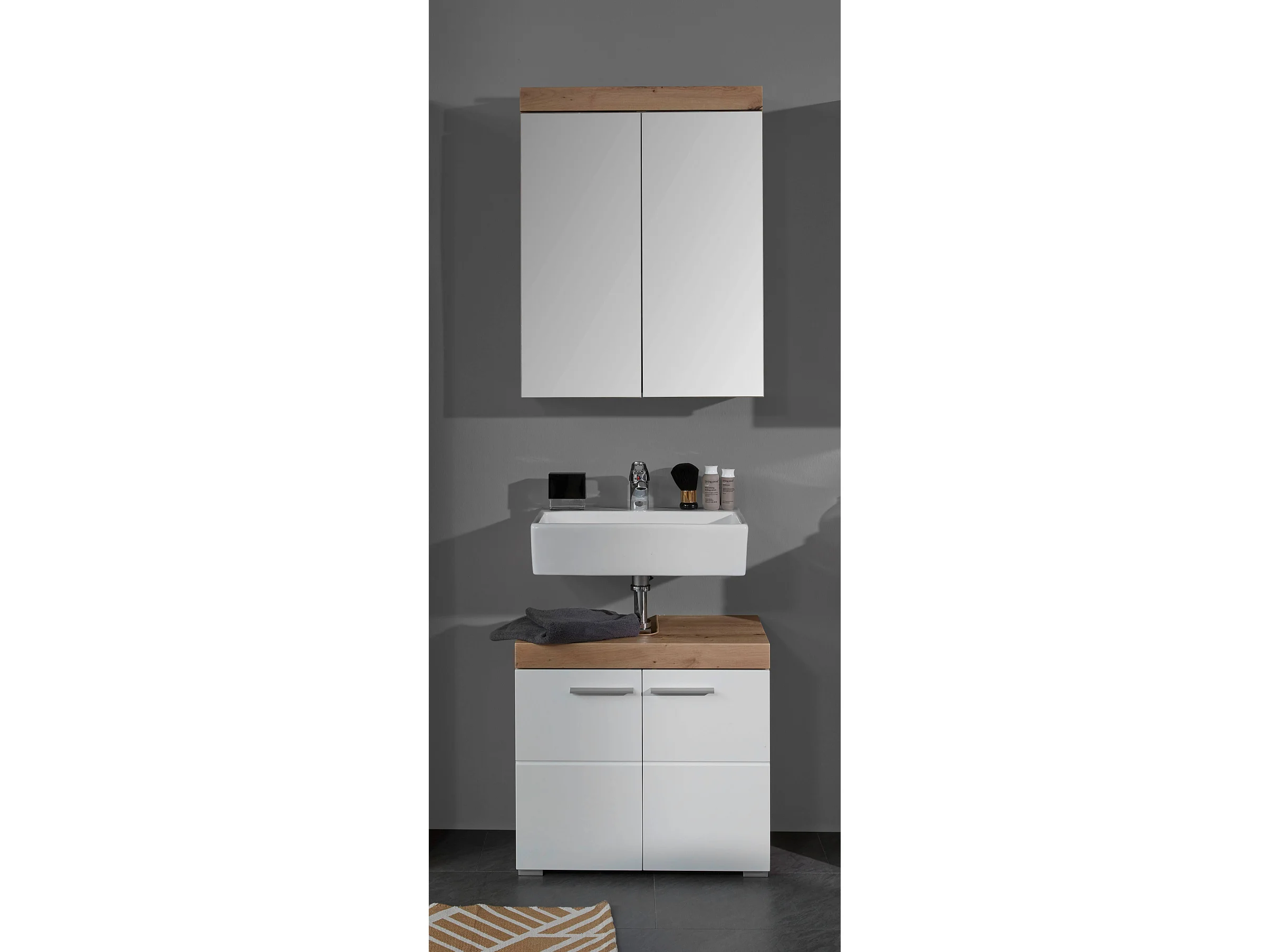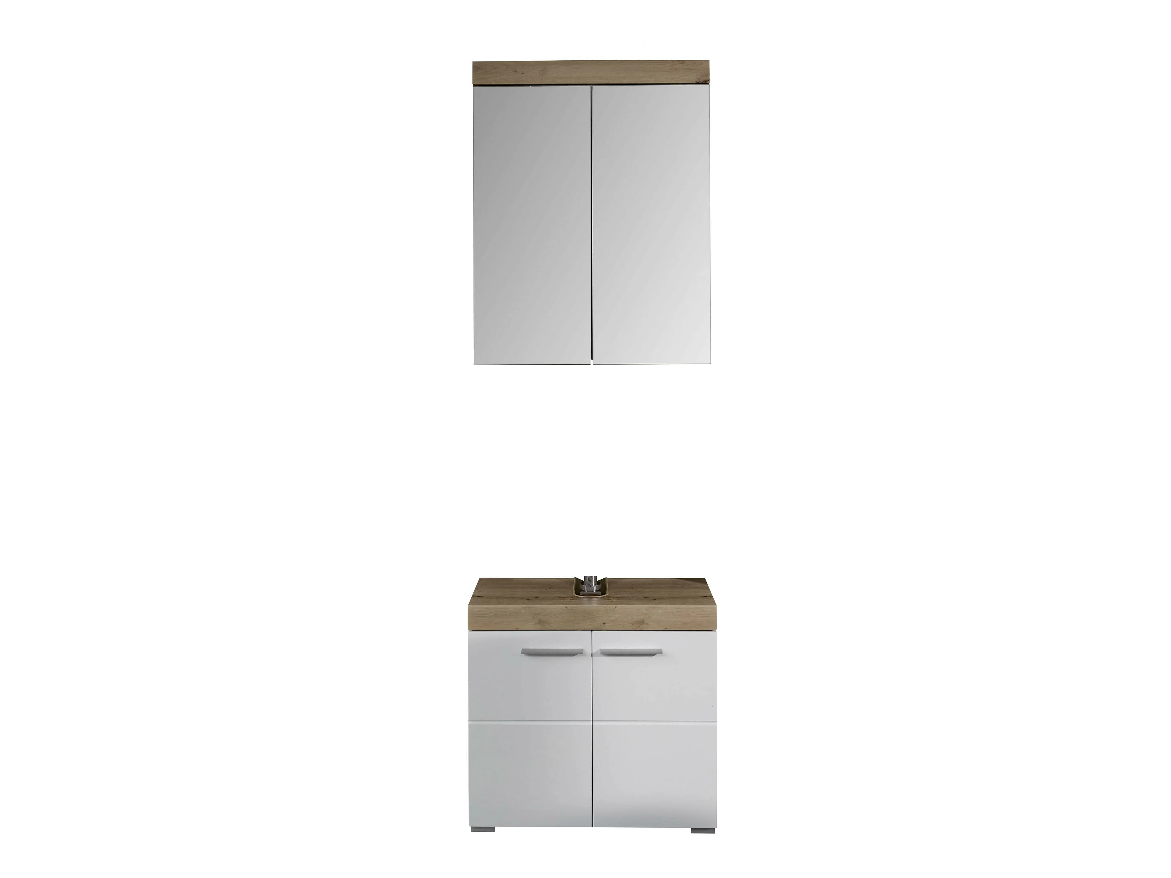 Ensemble salle de bain 2 pièces. mélaminé couleur chêne/blanc brillant L - H - P : 60 - 190 - 34 cm