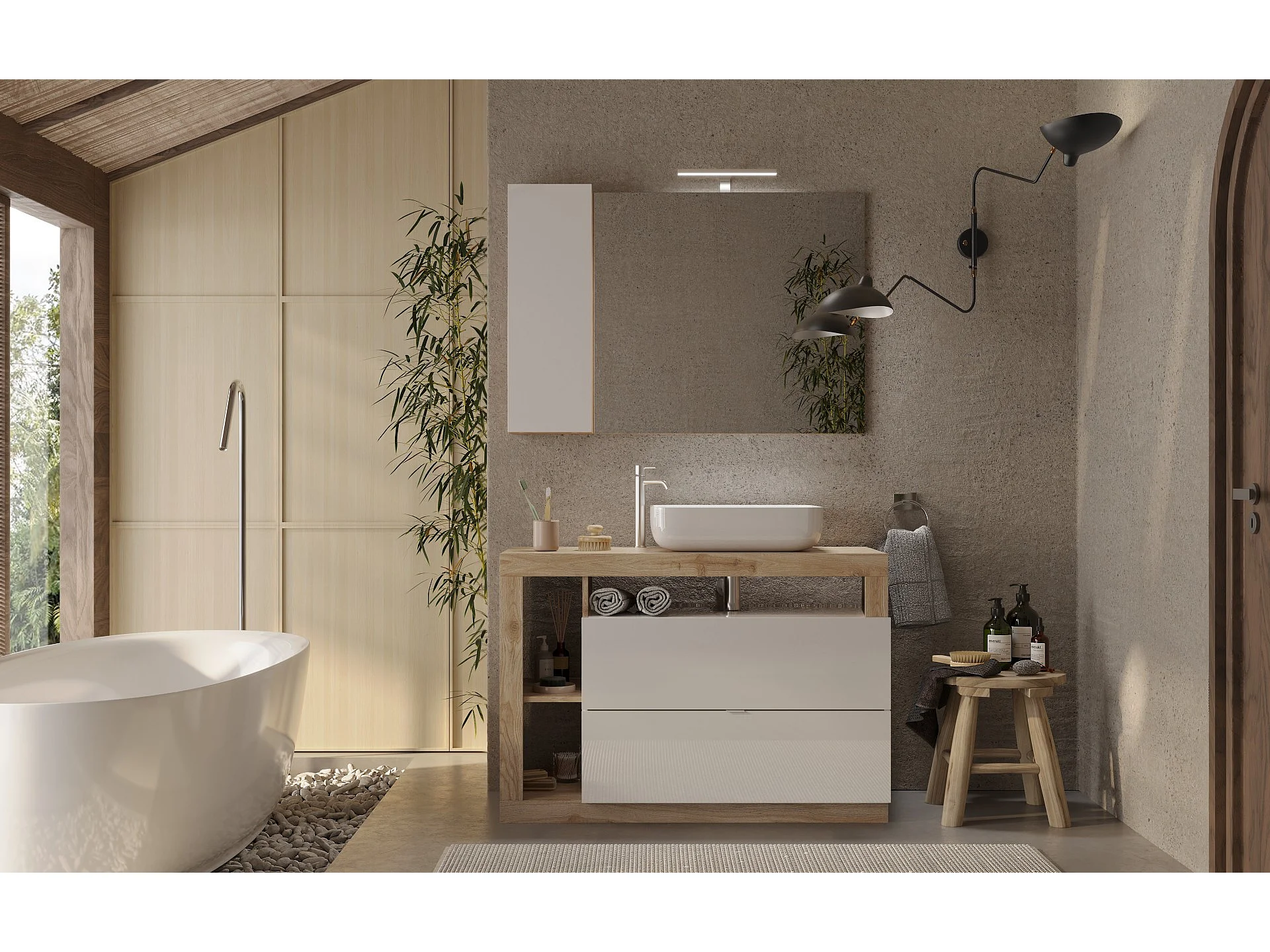 Ensemble salle de bain meuble+miroir+vasque HAMBURG blanc brillant, Kadiz 110 x 79 x 49 cm
