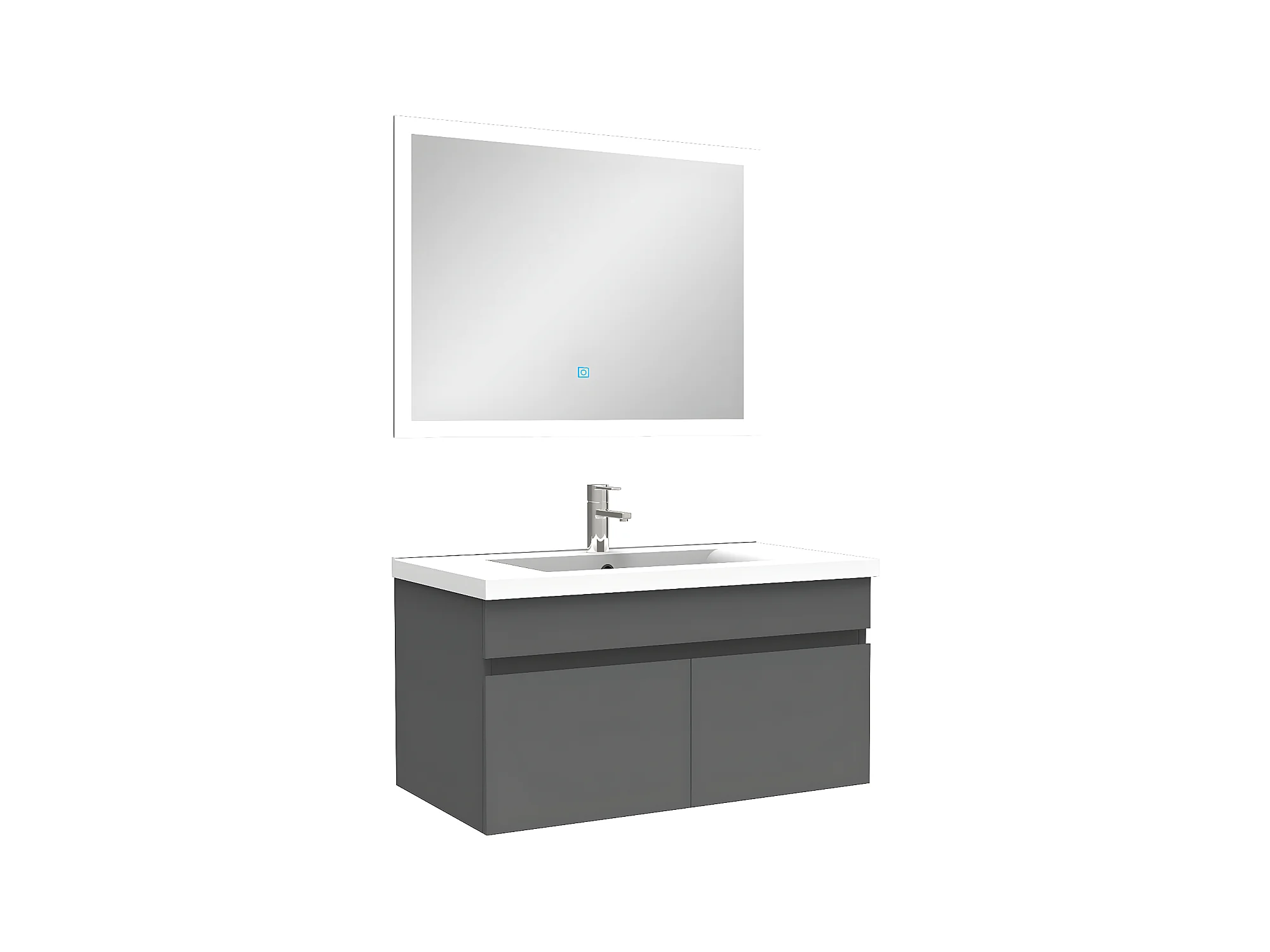 Ensemble Salle De Bain simple vasque 80cm meuble Anthracite avec miroir lumineux, Aica