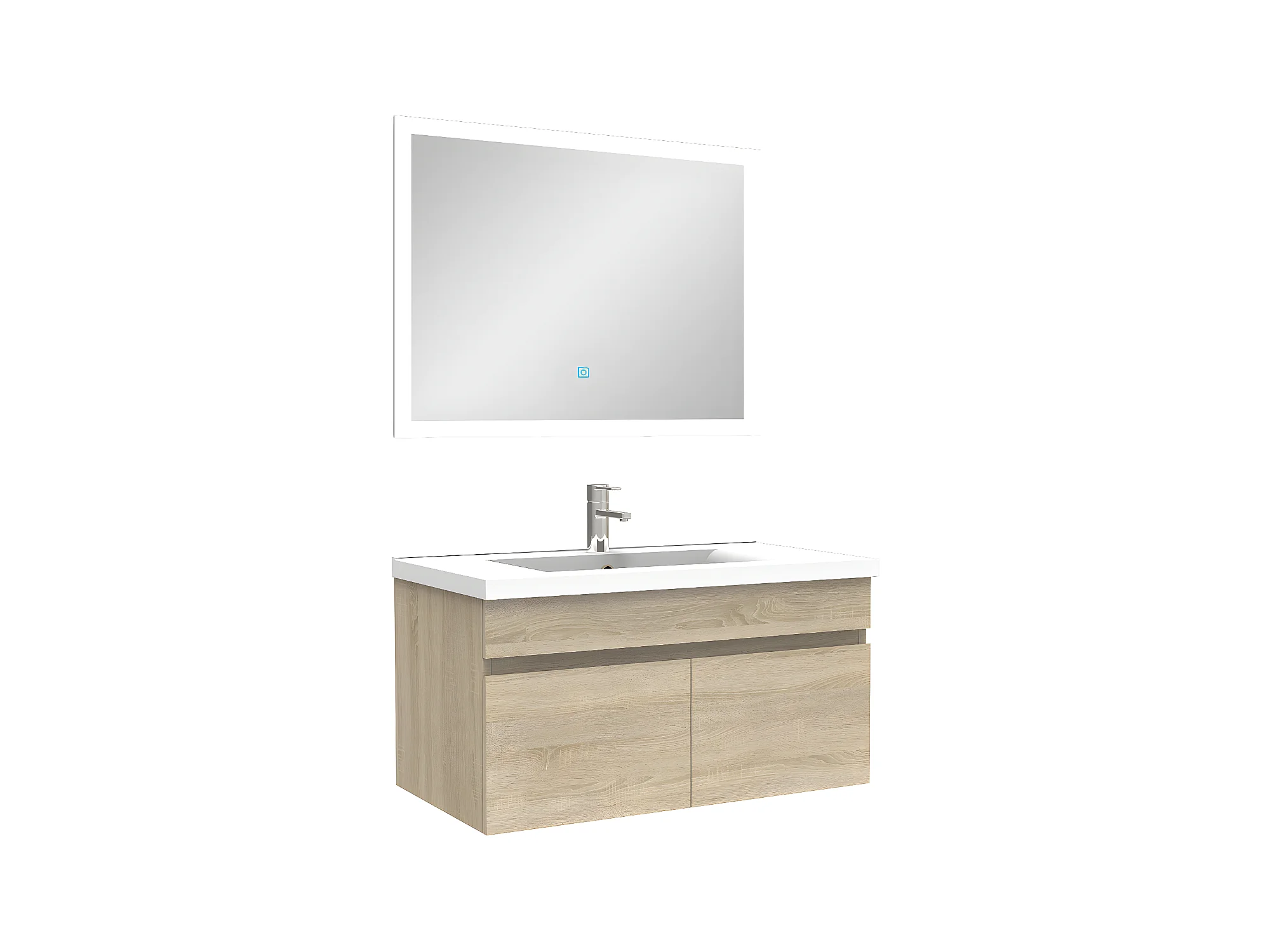 Ensemble Salle De Bain simple vasque 80cm meuble Chêne Wotan avec miroir lumineux, Aica