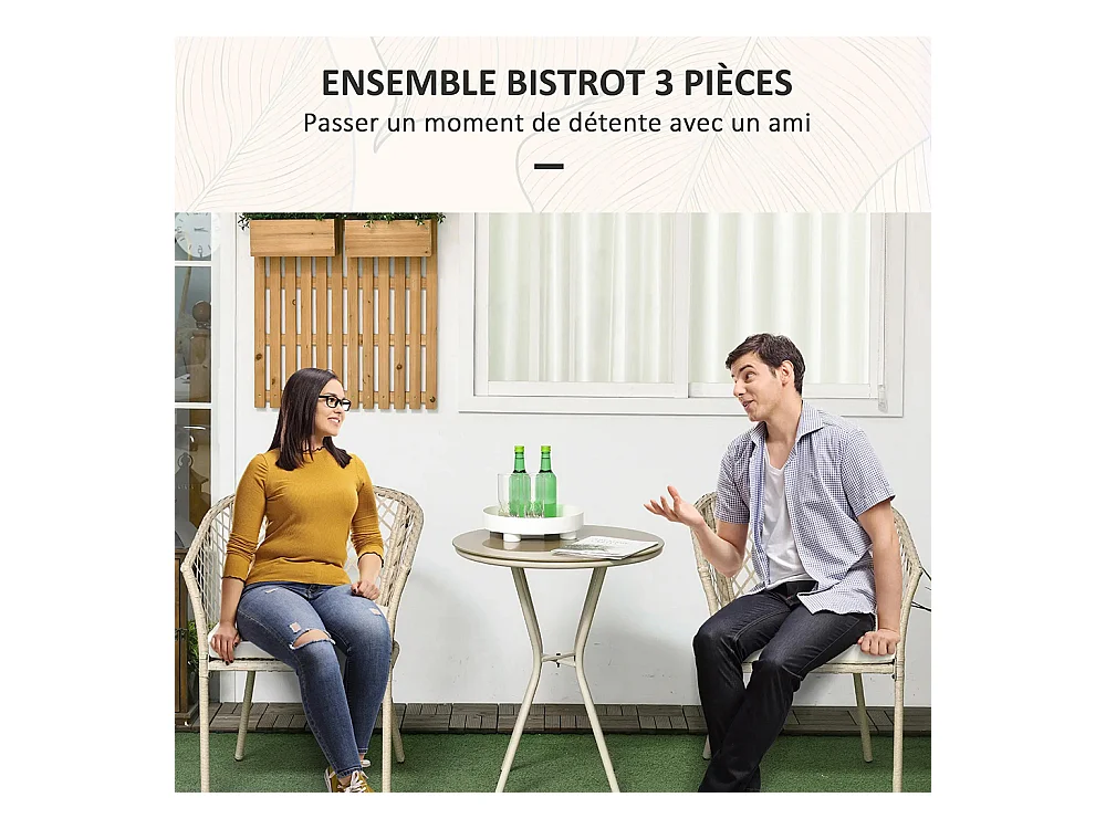 Ensemble salon de jardin 2 personnes 3 pièces 2 fauteuils avec coussins table d'appoint ronde métal