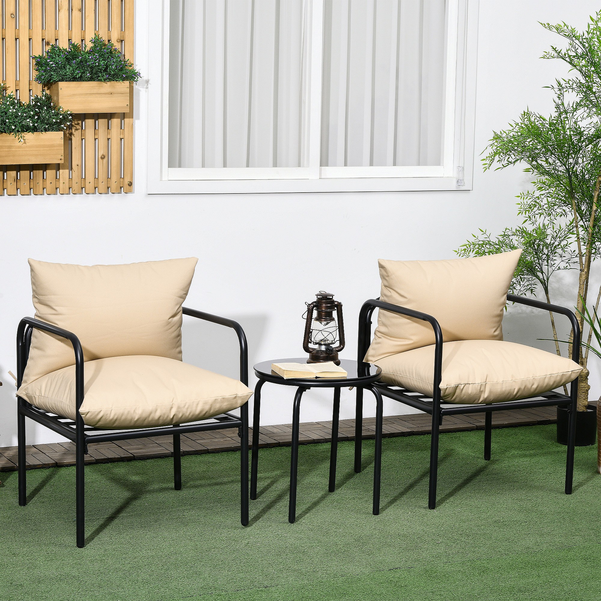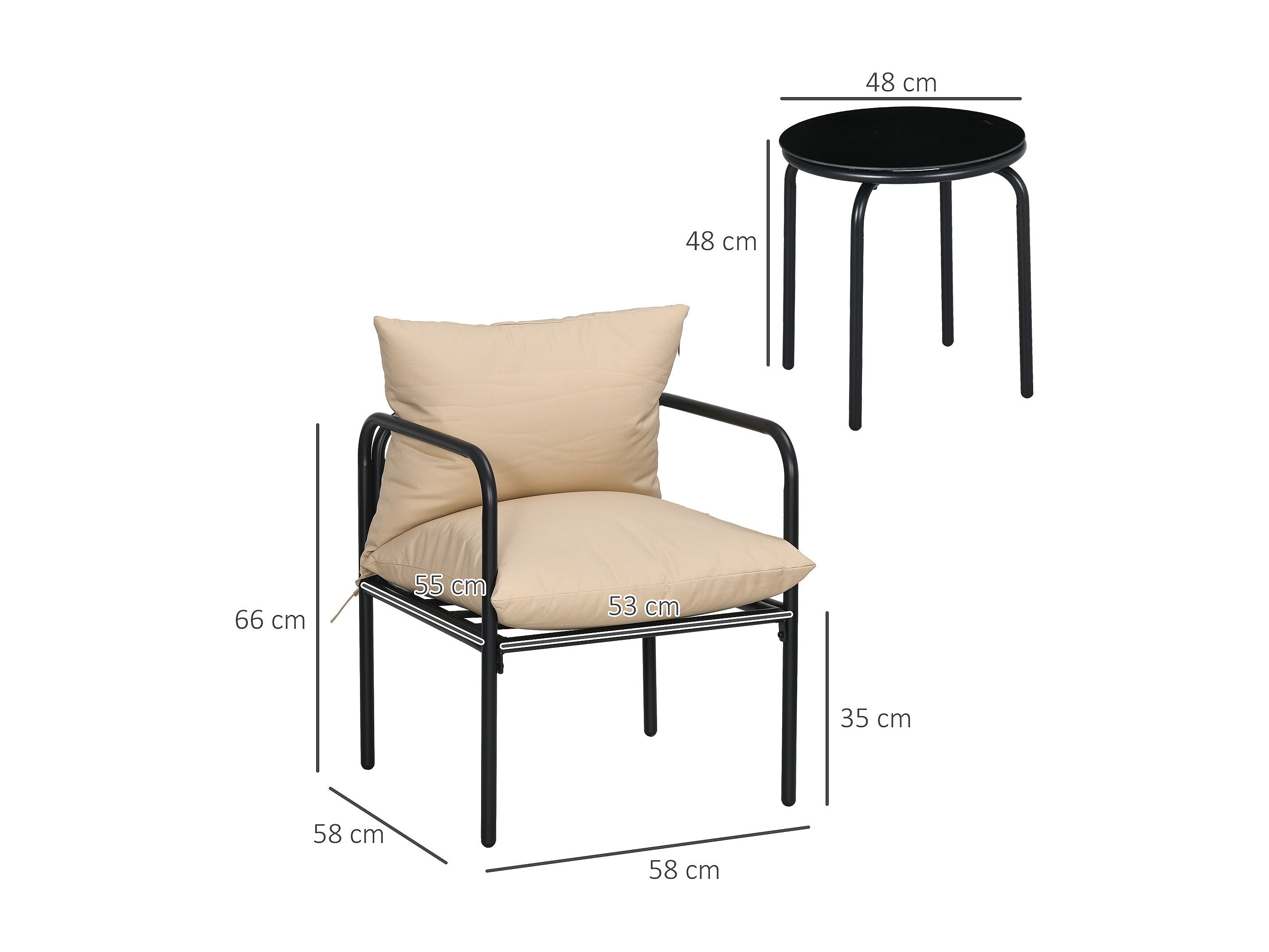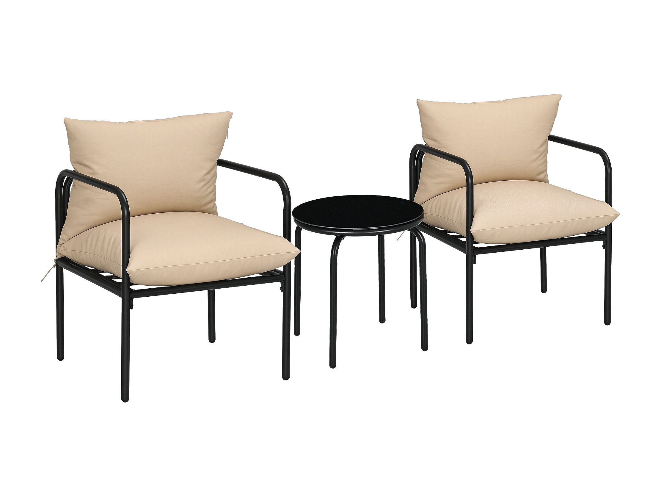 Ensemble salon de jardin 2 places 3 pièces avec coussins beige